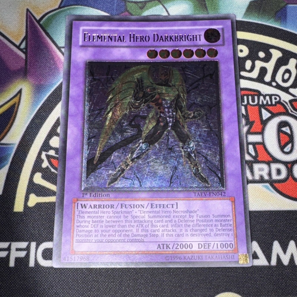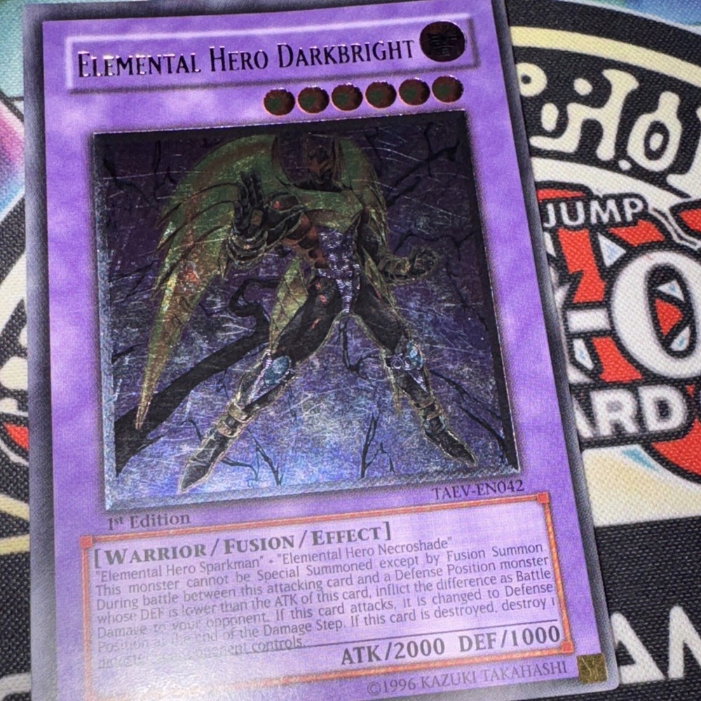 This Ultimate Rare 1st Edition Elemental Hero Darkbright is a must-have for any Yu-Gi-Oh! collector! The stunning holographic finish and crisp details make it stand out in any deck. Perfect condition, great for dueling or display—absolutely worth adding to your collection!