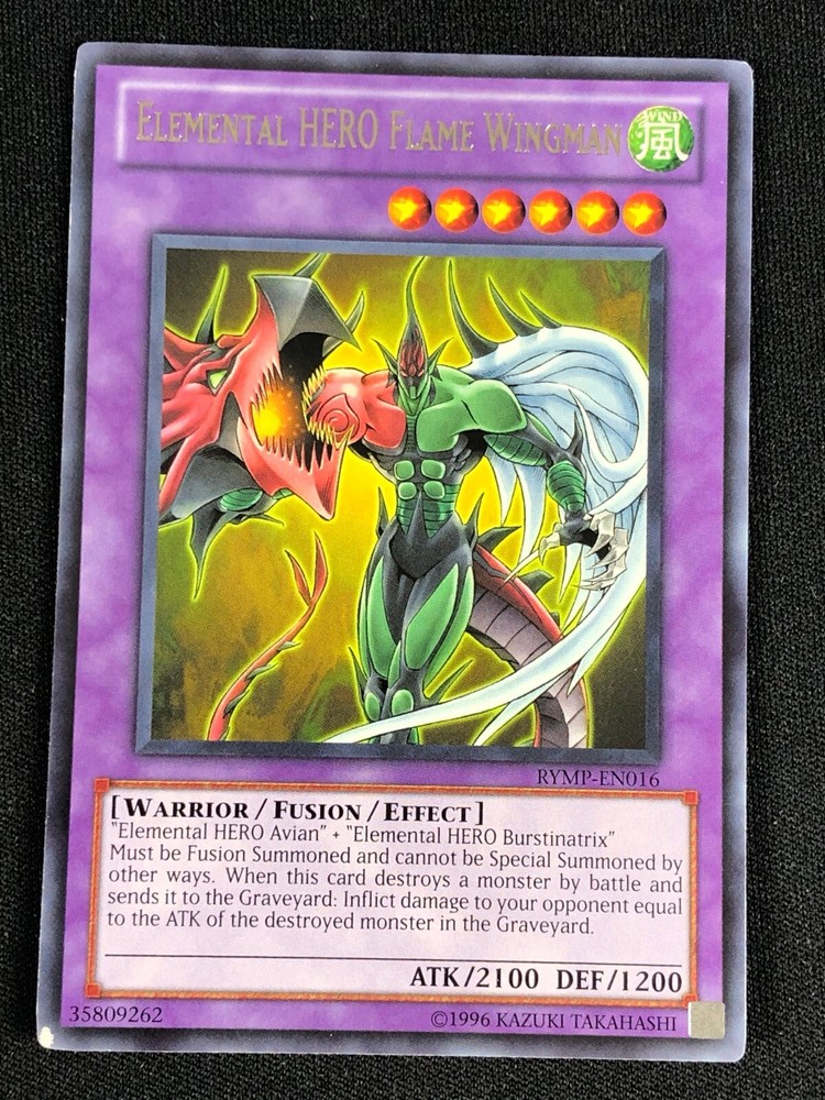 YUGIOH ELEMENTAL HERO FLAME WINGMAN RYMP-EN016 RARE (LP) ALL CARDS IN THIS AUCTION ARE IN NEAR MINT TO MINT CONDITION UNLESS STATED OTHERWISE IN THE TITLE. AND, YOU ARE GUARANTEED TO RECEIVE THE CARD NAMED IN THE TITLE. PLEASE NOTE, IF THERE'S MORE THAN 1 COPY AVAILABLE, YOU MAY NOT RECIEVE THE SAME EXACT CARD IN THE PHOTO. HOWEVER, IT WILL BE THE SAME EXACT CARD IN THE TITLE, AND DESCRIPTION! PLEASE CONTACT ME IF THERE IS ANYTHING WRONG WITH YOUR ORDER OR SHIPPING BEFORE LEAVING FEEDBACK. PLEASE GIVE ME A CHANCE TO FIX ANY PROBLEM YOU MAY HAVE. THANK YOU! Shipping Information: Shipping and Handling for this auction will be Free inside the United States - With Tracking! International Shipping Available Through Ebay’s Global Shipping Program. (BUYER IS RESPONSIBLE FOR ANY TAX) **Read the TITLE to see the condition of the cards Before you place a bid. Any damaged cards will be listed as such In The Title (FOR EXAMPLE: Blue Eyes White Dragon LOB-001 (HP) If it doesn't say anything about damage, it is in near-mint to mint condition. If you have any questions, message me Before you place your bid.** *PLEASE READ* Ebay's Card Condition Guidelines: (NM) = Near mint or better Comparable to a fresh pack Flaws may include Minor corner and edge wear (LP) = Lightly played (Excellent) Has clearly visible signs of wear Flaws may include Moderate edge chipping Moderate surface scuffing Fuzzy corners (MP) = Moderately played (Very good) Has moderate-to-heavy damage all over Flaws may include Moderate discoloration Moderate creasing Moderate to heavy edge chipping Rounding and soft corner (HP) = Heavily played (Poor) Is extremely worn and displays flaws all over Heavily Played condition cards exhibit signs of heavy wear. Heavily Played condition cards may include cards that have significant creasing, folding, severe water damage, heavy whitening, heavy border wear, and/or tearing. RETURN POLICY: RETURNS ARE ACCEPTED IF THE ITEM ARRIVES DAMAGED, OR NOT AS DESCRIBED. RETURNS ARE NOT ACCEPTED FOR BUYERS REMORSE. CHECK OUT MY OTHER AUCTIONS! _gsrx_vers_1652 (GS 9.7.4 (1652))