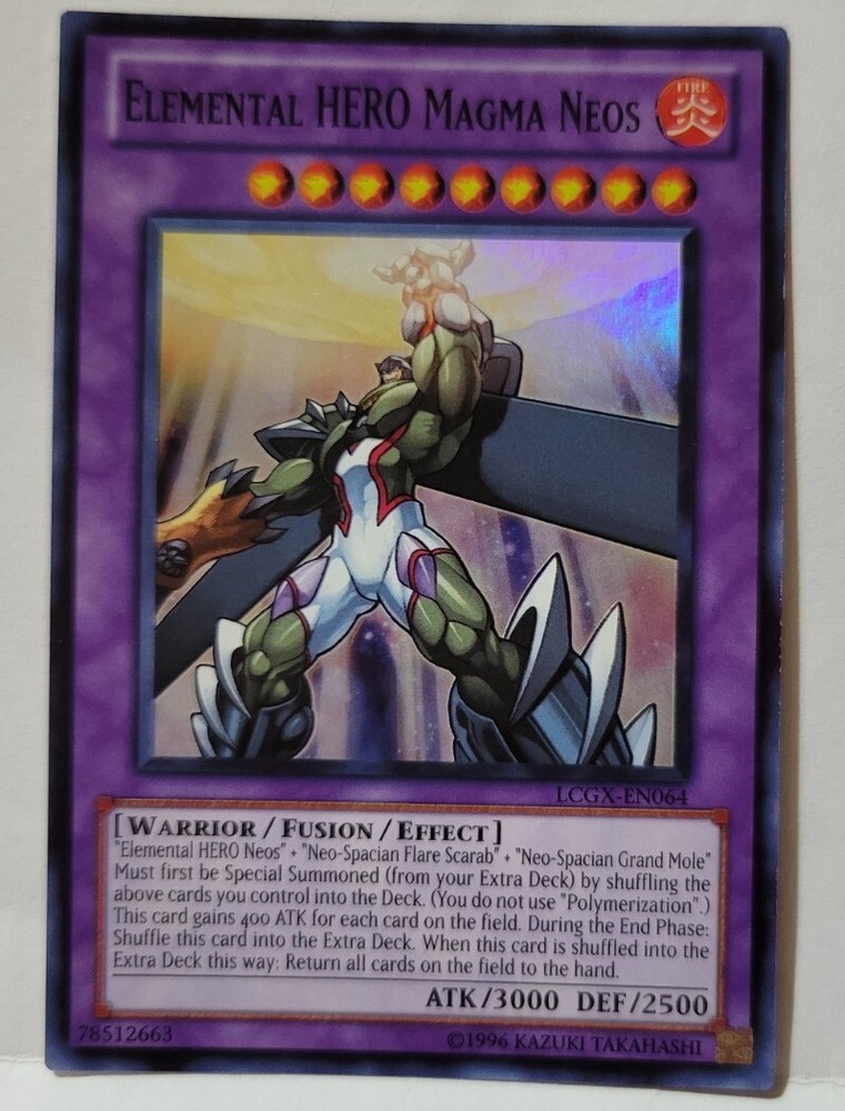 THIS AUCTION IS FOR ONE ELEMENTAL HERO MAGMA NEOS SUPER LIGHT PLAYED VISIT MY FACEBOOK PAGE YUGIOH GAMERS