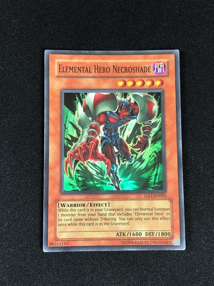 YUGIOH ELEMENTAL HERO NECROSHADE GX1-EN001 SUPER PLAY/EDGEWARE ALL CARDS IN THIS AUCTION ARE IN NEAR MINT TO MINT CONDITION UNLESS STATED OTHERWISE IN THE TITLE. AND, YOU ARE GUARANTEED TO RECEIVE THE CARD NAMED IN THE TITLE. PLEASE NOTE, IF THERE'S MORE THAN 1 COPY AVAILABLE, YOU MAY NOT RECIEVE THE SAME EXACT CARD IN THE PHOTO. HOWEVER, IT WILL BE THE SAME EXACT CARD IN THE TITLE, AND DESCRIPTION! PLEASE CONTACT ME IF THERE IS ANYTHING WRONG WITH YOUR ORDER OR SHIPPING BEFORE LEAVING FEEDBACK. PLEASE GIVE ME A CHANCE TO FIX ANY PROBLEM YOU MAY HAVE. THANK YOU! Shipping Information: Shipping and Handling for this auction will be Free inside the United States - With Tracking! International Shipping Available Through Ebay’s Global Shipping Program. (BUYER IS RESPONSIBLE FOR ANY TAX) **Read the TITLE to see the condition of the cards Before you place a bid. Any damaged cards will be listed as such In The Title (FOR EXAMPLE: Blue Eyes White Dragon LOB-001 - Play/Edgewear). If it doesn't say anything about damage, it is in near-mint to mint condition. If you have any questions, message me Before you place your bid.** RETURN POLICY: RETURNS ARE ACCEPTED IF THE ITEM ARRIVES DAMAGED, OR NOT AS DESCRIBED. RETURNS ARE NOT ACCEPTED FOR BUYERS REMORSE. CHECK OUT MY OTHER AUCTIONS! _gsrx_vers_1516 (GS 9.3 (1516))