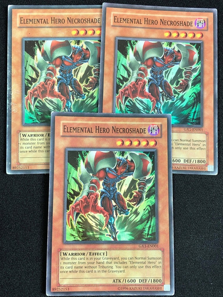 YUGIOH ELEMENTAL HERO NECROSHADE GX1-EN001 SUPER X3 (MP) ALL CARDS IN THIS AUCTION ARE IN NEAR MINT TO MINT CONDITION UNLESS STATED OTHERWISE IN THE TITLE. AND, YOU ARE GUARANTEED TO RECEIVE THE CARD NAMED IN THE TITLE. PLEASE NOTE, IF THERE'S MORE THAN 1 COPY AVAILABLE, YOU MAY NOT RECIEVE THE SAME EXACT CARD IN THE PHOTO. HOWEVER, IT WILL BE THE SAME EXACT CARD IN THE TITLE, AND DESCRIPTION! PLEASE CONTACT ME IF THERE IS ANYTHING WRONG WITH YOUR ORDER OR SHIPPING BEFORE LEAVING FEEDBACK. PLEASE GIVE ME A CHANCE TO FIX ANY PROBLEM YOU MAY HAVE. THANK YOU! Shipping Information: Shipping and Handling for this auction will be Free inside the United States - With Tracking! International Shipping Available Through Ebay’s Global Shipping Program. (BUYER IS RESPONSIBLE FOR ANY TAX) **Read the TITLE to see the condition of the cards Before you place a bid. Any damaged cards will be listed as such In The Title (FOR EXAMPLE: Blue Eyes White Dragon LOB-001 (HP) If it doesn't say anything about damage, it is in near-mint to mint condition. If you have any questions, message me Before you place your bid.** *PLEASE READ* Ebay's Card Condition Guidelines: (NM) = Near mint or better Comparable to a fresh pack Flaws may include Minor corner and edge wear (LP) = Lightly played (Excellent) Has clearly visible signs of wear Flaws may include Moderate edge chipping Moderate surface scuffing Fuzzy corners (MP) = Moderately played (Very good) Has moderate-to-heavy damage all over Flaws may include Moderate discoloration Moderate creasing Moderate to heavy edge chipping Rounding and soft corner (HP) = Heavily played (Poor) Is extremely worn and displays flaws all over Heavily Played condition cards exhibit signs of heavy wear. Heavily Played condition cards may include cards that have significant creasing, folding, severe water damage, heavy whitening, heavy border wear, and/or tearing. RETURN POLICY: RETURNS ARE ACCEPTED IF THE ITEM ARRIVES DAMAGED, OR NOT AS DESCRIBED. RETURNS ARE NOT ACCEPTED FOR BUYERS REMORSE. CHECK OUT MY OTHER AUCTIONS! _gsrx_vers_1600 (GS 9.5a1 (1600))