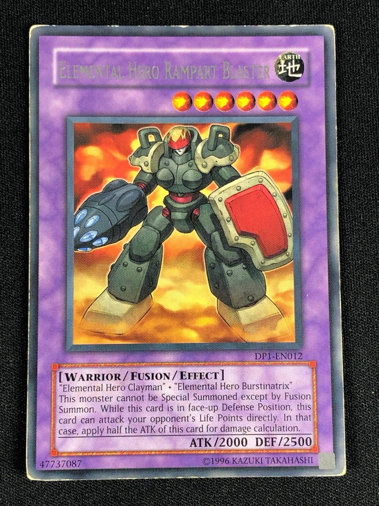 YUGIOH ELEMENTAL HERO RAMPART BLASTER DP1-EN012 RARE (MP) ALL CARDS IN THIS AUCTION ARE IN NEAR MINT TO MINT CONDITION UNLESS STATED OTHERWISE IN THE TITLE. AND, YOU ARE GUARANTEED TO RECEIVE THE CARD NAMED IN THE TITLE. PLEASE NOTE, IF THERE'S MORE THAN 1 COPY AVAILABLE, YOU MAY NOT RECIEVE THE SAME EXACT CARD IN THE PHOTO. HOWEVER, IT WILL BE THE SAME EXACT CARD IN THE TITLE, AND DESCRIPTION! PLEASE CONTACT ME IF THERE IS ANYTHING WRONG WITH YOUR ORDER OR SHIPPING BEFORE LEAVING FEEDBACK. PLEASE GIVE ME A CHANCE TO FIX ANY PROBLEM YOU MAY HAVE. THANK YOU! Shipping Information: Shipping and Handling for this auction will be Free inside the United States - With Tracking! International Shipping Available Through Ebay’s Global Shipping Program. (BUYER IS RESPONSIBLE FOR ANY TAX) **Read the TITLE to see the condition of the cards Before you place a bid. Any damaged cards will be listed as such In The Title (FOR EXAMPLE: Blue Eyes White Dragon LOB-001 (HP) If it doesn't say anything about damage, it is in near-mint to mint condition. If you have any questions, message me Before you place your bid.** *PLEASE READ* Ebay's Card Condition Guidelines: (NM) = Near mint or better Comparable to a fresh pack Flaws may include Minor corner and edge wear (LP) = Lightly played (Excellent) Has clearly visible signs of wear Flaws may include Moderate edge chipping Moderate surface scuffing Fuzzy corners (MP) = Moderately played (Very good) Has moderate-to-heavy damage all over Flaws may include Moderate discoloration Moderate creasing Moderate to heavy edge chipping Rounding and soft corner (HP) = Heavily played (Poor) Is extremely worn and displays flaws all over Heavily Played condition cards exhibit signs of heavy wear. Heavily Played condition cards may include cards that have significant creasing, folding, severe water damage, heavy whitening, heavy border wear, and/or tearing. RETURN POLICY: RETURNS ARE ACCEPTED IF THE ITEM ARRIVES DAMAGED, OR NOT AS DESCRIBED. RETURNS ARE NOT ACCEPTED FOR BUYERS REMORSE. CHECK OUT MY OTHER AUCTIONS! _gsrx_vers_1652 (GS 9.7.4 (1652))