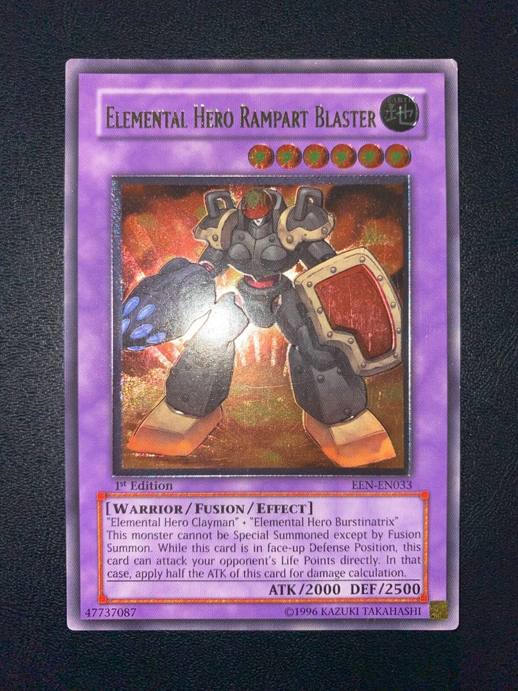 This Ultimate Rare Rampart Blaster is a must-have for any serious Yu-Gi-Oh! collector! The 1st Edition print from 2005 looks stunning with its holographic foil and crisp details. The card arrived in excellent condition, just as pictured—perfect for both competitive play and display. Such a rare find from the Elemental Energy set, definitely worth adding to your Ultimate Rare collection! Fast shipping and well-packaged too.