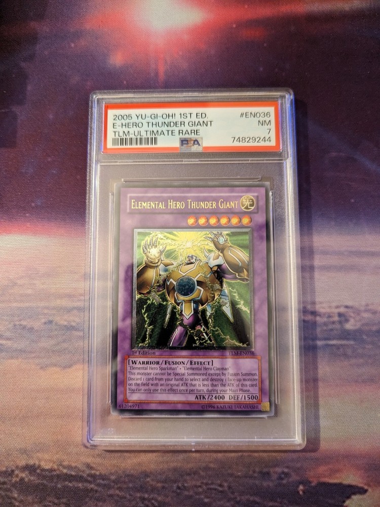 You are buying 1x YUGIOH TCG GRADED ELEMENTAL HERO THUNDER GIANT ULTIMATE RARE TLM- EN036 1ST EDITION PSA 7 Thank you for shopping