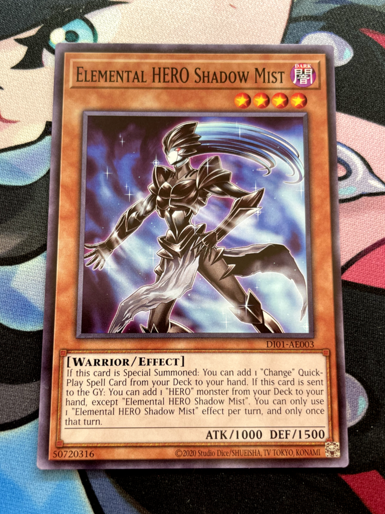 YUGIOH Elemental HERO Shadow Mist DI01-AE003 COMMON NEAR MINT - ASIAN-ENGLISH EDITION (Asian-English cards are cards printed in English by Konami specifically for the OCG, hence the Japanese card back.) If you have any questions, please feel free to ask!