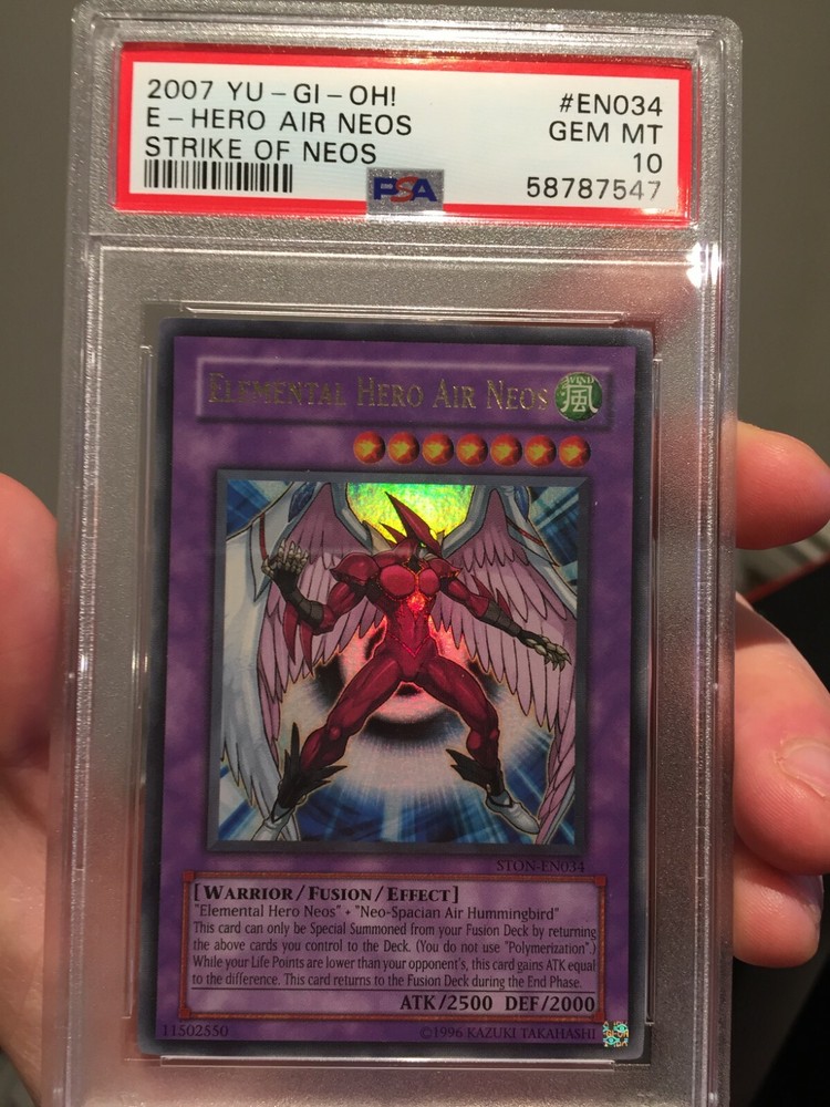 YUGIOH - Elemental Hero Air Neos Ultra rare STON-en034 unlim PSA 10 POP 5 They are really hard to find!! Condition is Used. Shipped with Canada Post with tracking. What you see is what you get! No Return !! Feel free to ask questions :D I'm not a grader so i have no power on the grade the card got... what you see is what you get! Go see my others yugioh cards for sale!!