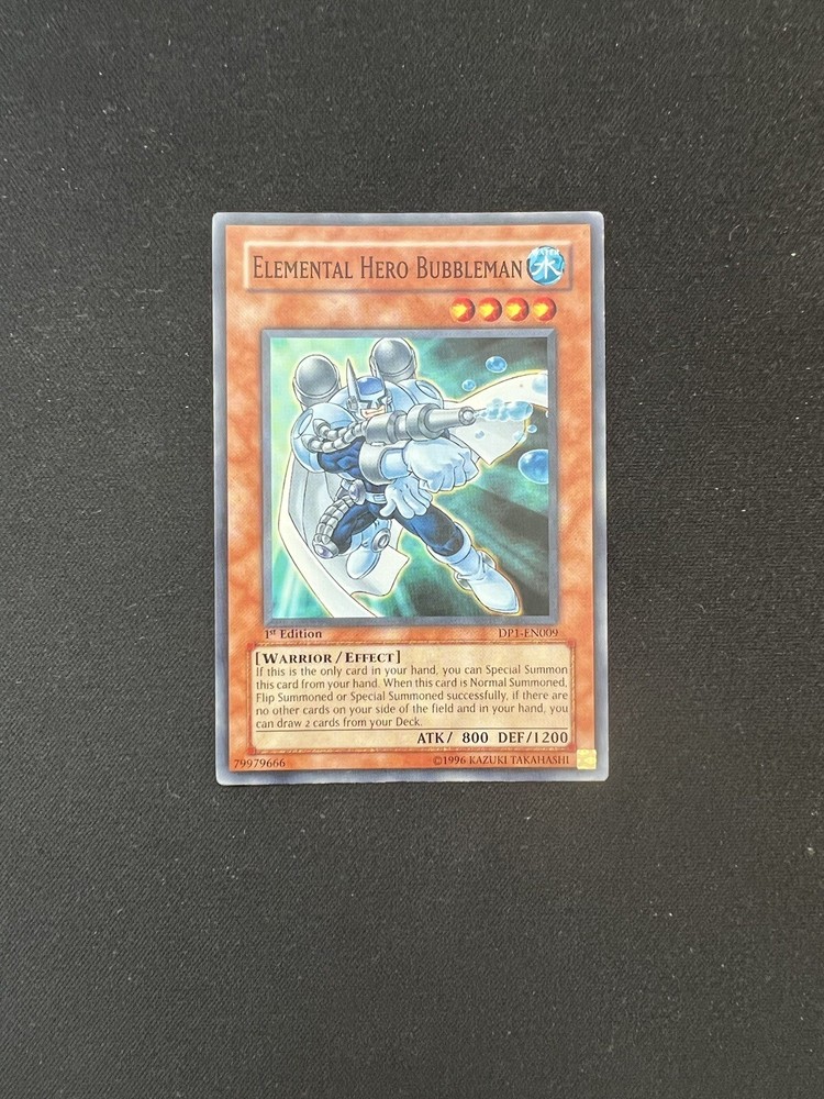 YU-GI-OH! Elemental Hero Bubbleman. DP1-EN009 1st Edition. Condition is Ungraded. Shipped with USPS Ground Advantage.