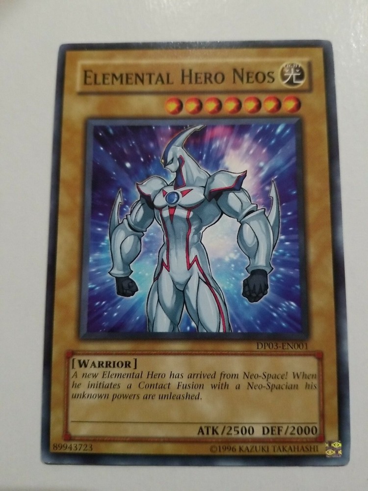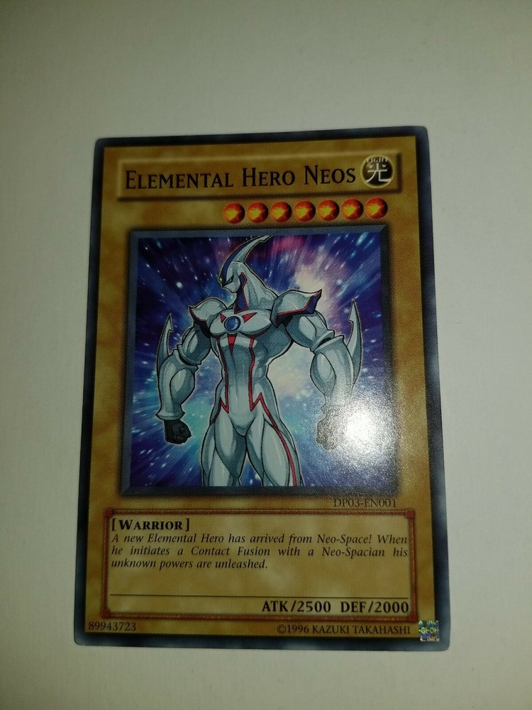 YUGIOH Elemental Hero Neos DP03-EN001 89943723. Condition is "Used". Shipped with USPS First Class. Condition is "Preowned" and not graded. The photo in the listing IS the actual card you will receive so please refer to photo for exact condition.