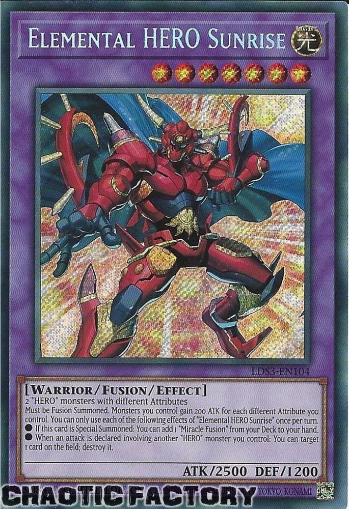 LDS3-EN104 Elemental HERO Sunrise Secret Rare 1st Edition NM FACTORY SEALED YU-GI-OH! Product details (click to expand) Condtion Details NM Mint or Near mint LP Light Played, minor scatch or edge wear HP Heavy Played; very visible damages NOTE Refer to ebay's condition guide for further details Specifications (click to expand) SKU LDS3-EN104 Model # Barcode # Brand YU-GI-OH! Artist / Author Shipping Weight 0.0020kg Shipping Width 0.000m Shipping Height 0.000m Shipping Length 0.000m Shipping Cubic 0.000000000m3 Unit Of Measure ea Assembled Length 0.000m Assembled Height 0.000m Assembled Width 0.000m Type Format Delivery & Turn Around time (click to expand) Packing We always pack with toploader & soft sleeves Postage Method - Doemstic Standard Untracked Untrack letter post, delivery within 15 business days Domestic Tracked Tracked letter post, delivery within 15 business days with tracking Express Post Express Post; delivery after 2 to 3 business days after dispatch using AUSPOST's express network, exclusion applies; check auspost's website for details Turn Around time Dispatch 2 to 3 business days; which mean EXCLUDE WEEKEND © 2025 Chaotic Factory