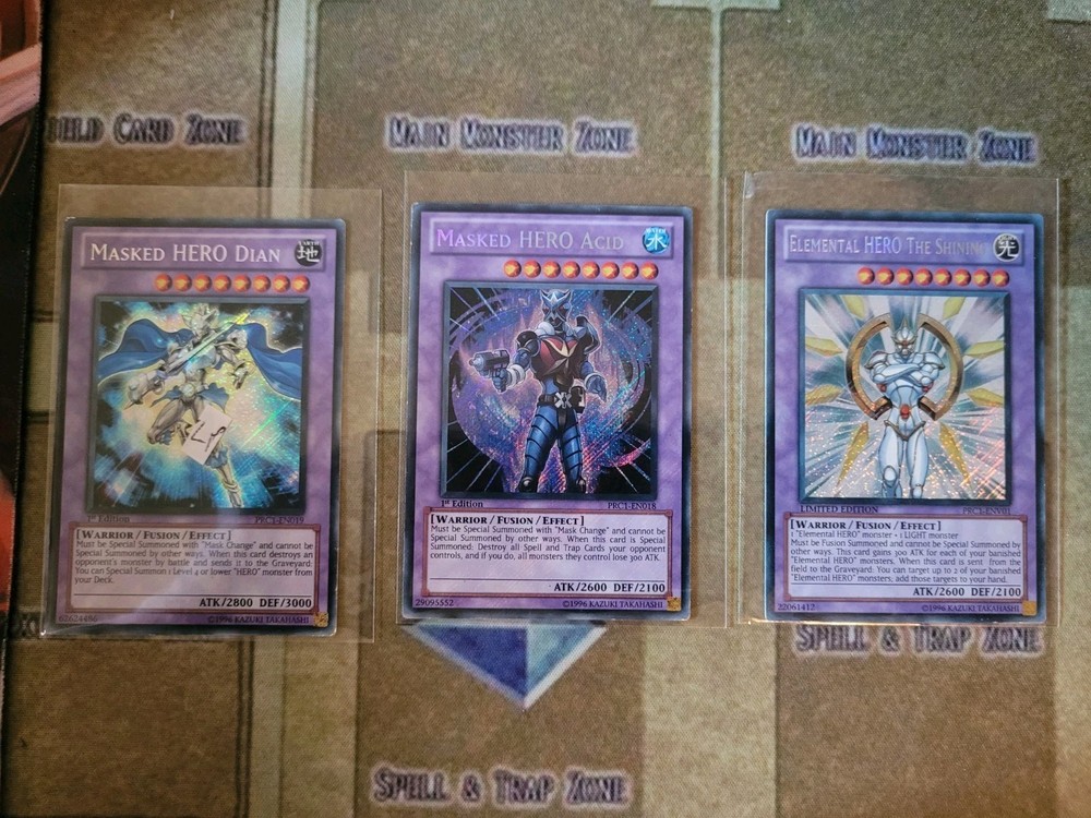 YUGIOH TCG MASKED HERO ACID PRC1-EN018 SECRET 1ST EDITION + MASKED HERO DIAN PRC1-EN019 SECRET 1ST EDITION + ELEMENTAL HERO THE SHINING PRC1-ENV01 SECRET LIMITED EDITION ALL LIGHT PLAYED YOU GET WHATS SHOWN IN THE PICTURE AND DESCRIPTION ALL CARDS ARE SHIP WITH PROECTIONS. ALL CARDS THAT IS BELOW $20 WELL BE SHIP IN PWE WITH EBAY TRACKING. $24-$21 CARDS WELL BE WITH STAMPS PWE. CARDS ABOVE $25 WELL BE SHIP IN BUBBLE MAIL WITH USPS GROUND SHIPPING TRACKING. IF YOUR ORDERS ADDS UP TO $25 OR ABOVE IT WOULD BE ALSO IN A BUBBLE MAILER. THIS ONLY APPLIES TO USA RESIDENT ONLY. IF YOU ARE FROM PUERTO RICO AND ARE BUYING MAKE SURE YOU HAVE "COUNTRY LIST AS UNITED STATES NOT PRI" OR ELSE I CAN'T PRINT EBAYSHIPPING LABEL WITH TRACKING AND WELL SENT ITEM BY STAMPS TO YOU. THANKS. *Update* BUG IS FIX SO YOU DON'T HAVE TO IF YOU DON'T WANT TO. SENDING ITEM WITH STAMPS STILL STAND IF LABEL DOESNT PRINT. *Update* Starting 4/15/2025 To international buyers that been abusing the refund system by using Fright Forward Services and never read my description. Due to the many of people who been ordering below $20 and been abusing the refund system. I have decided to stop all sales to international buyers who is using Fright Forward Services and buying below $30. I will now be making only exception to those who order over $30 or more only. There will be no more PWE for international buyers only bubbler mailers. If you don't READ or order below $30 I will refund and block you. IF YOU CAN LEAVE FEEDBACKS THAT WOULD BE MUCH APPRECIATE THANK YOU FOR BUYING.