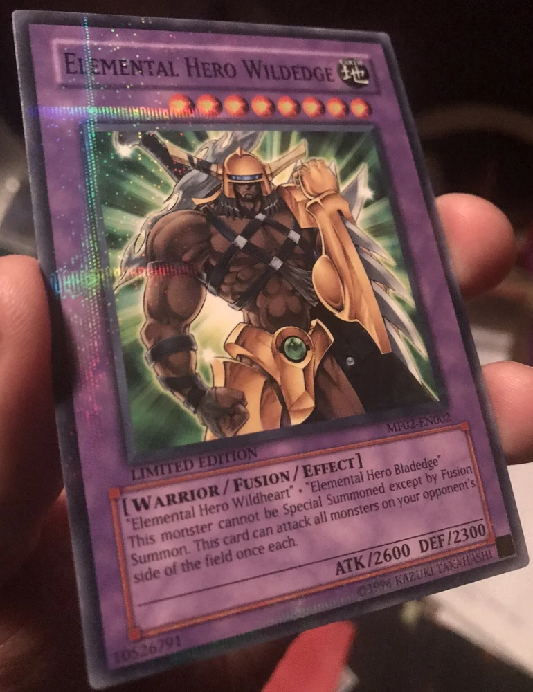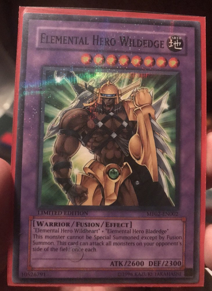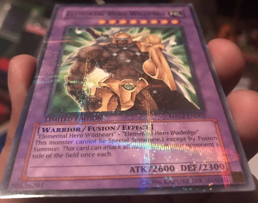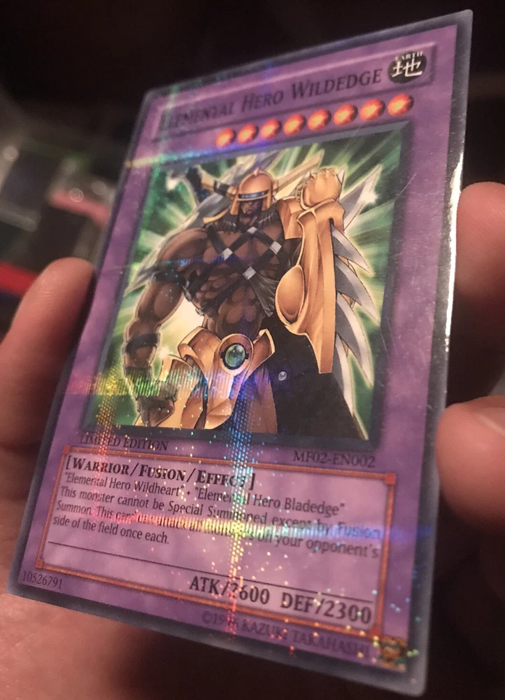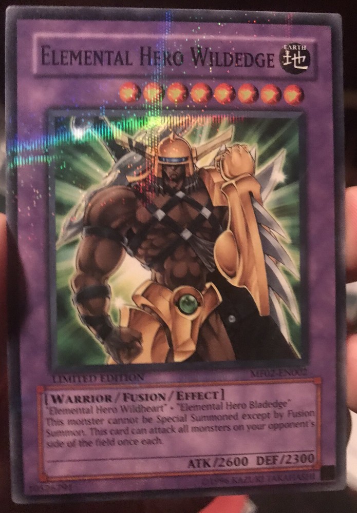 Hello all, Up for sale is a YUGIOH MF02-EN002 ELEMENTAL HERO WILDEDGE Mattel Action Figure Promos: Series 2. Condition is Pre-Owned! Card is conditioned at Light Play (LP), due to ding in top left front and edge wear in the back of card) Shipped Via USPS First Class with tracking! Cards will be sleeved and placed in a card protector. Shipped via bubble mailer! I Only accept payment through PayPal and will ship once payment has been successfully processed. I ONLY ship in the United States! USPS First Class with tracking. Please look at picture references, as that is what you will be receiving and please feel free to ask any questions before committing to a purchase! Thanks for viewing and appreciate your business! Will accept best offer!