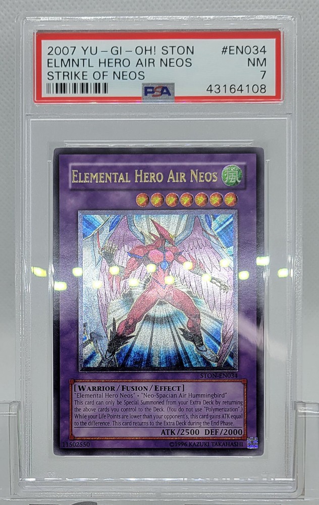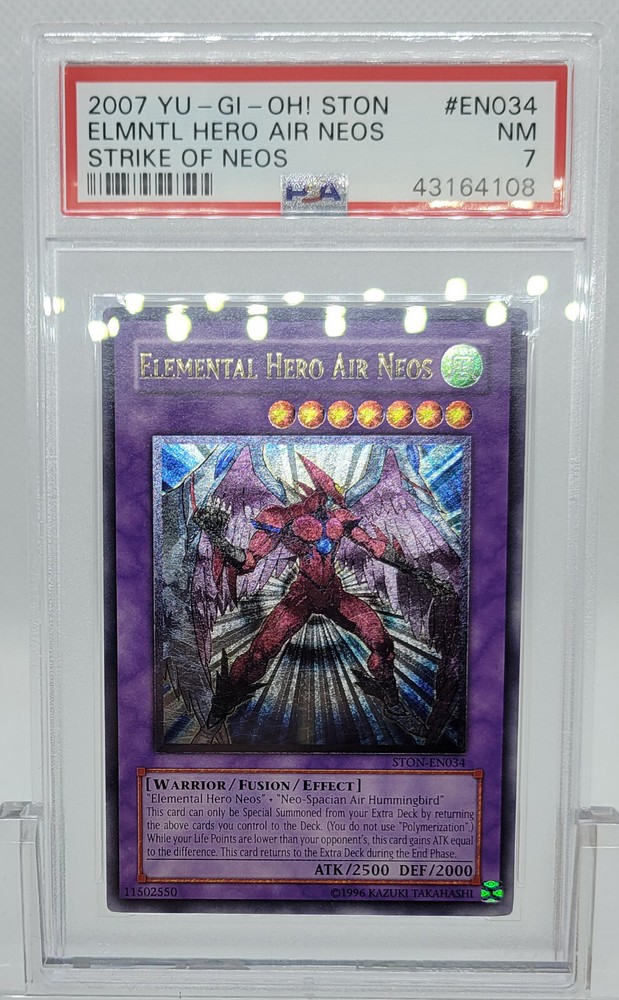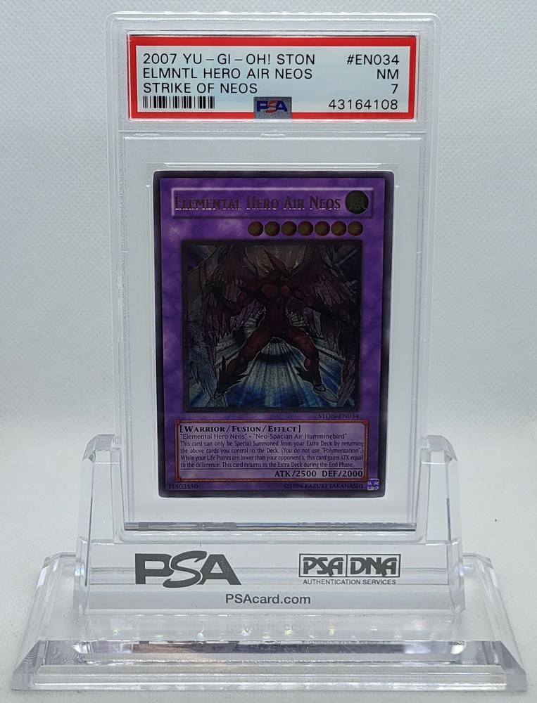 Description Condition: PSA 7 NM Availability: In Stock You are Purchasing YUGIOH STON-EN034 ELEMENTAL HERO AIR NEOS ULTIMATE RARE HOLO PSA 7 NM #43164108 Professionally graded by Professional Sports Authenticator (PSA) *PLEASE REVIEW PHOTO(S) BEFORE PURCHASING >>CHECK OUT OUR OTHER POKEMON<< >>PSA CARDS ON AUCTION<< IG: CARD_RUSH_INC Payment Options Payment is expected within 2 weeks of your purchase date. We accept all forms of payments through Paypal. Shipping and Handling We ship to all U.S. states, U.S. territories, APO/FPO locations and any international countries listed under our "ship to" heading. Shipping and Handling is calculated based on the combined shipping weight of your item(s). Please use the shipping calculator to estimate your shipping and handling charges. In order to qualify for combined shipping terms, all items must be paid for in one payment; please do not pay until you are done bidding/shopping. Please contact us if you have any questions regarding our shipping and handling terms. Shipping and Delivery Packages are shipped out every Monday, Wednesday, and Friday. Domestic Packages take approximately 2-7 days to arrive. International packages may take a little longer to arrive, typically 1-4 weeks. Please allow ample transit times before inquiring about your package, thank you. Sales Tax Sales tax will be automatically collected by Ebay. Customer Service We will make every effort to get your purchase is mailed in a timely manner. Please contact us if you have any questions or concerns; we would love to hear any suggestions you have on how we can improve your eBay experience. Thank you for visiting us today.