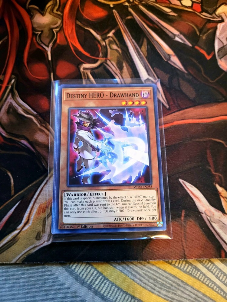 YUGIOH TCG 3X DESTINY HERO DRAWHAND MP20-EN055 COMMON 1ST EDITION NEAR MINT YOU GET WHATS SHOWN IN THE PICTURE AND DESCRIPTION ALL CARDS ARE SHIP WITH PROECTIONS. ALL CARDS THAT IS BELOW 20$ WELL BE SHIP IN PWE WITH EBAY TRACKING. 24$-21$ CARDS WELL BE WITH STAMPS PWE. CARDS ABOVE 25$ WELL BE SHIP IN BUBBLE MAIL WITH USPS GROUND SHIPPING TRACKING. IF YOUR ORDERS ADDS UP TO 25$ OR ABOVE IT WOULD BE ALSO IN A BUBBLE MAILER. IF YOU ARE FROM PUERTO RICO AND ARE BUYING MAKE SURE YOU HAVE "COUNTRY LIST AS UNITED STATES NOT PRI" OR ELSE I CAN'T PRINT EBAYSHIPPING LABEL WITH TRACKING AND WELL SENT ITEM BY STAMPS TO YOU. THANKS. To international buyers since I have been having many buyers that are using Fright Forward Services. YOU ARE BUYING AT YOUR OWN RISK. As I list in my description, I ship using PWE (Plain White Envelope) for cards that does not reach $25 and above. I do not know how the Fright Services pack it after mailing it to them. All I know is that many of the PWE does not make it to its original destination (your real home address) either it's the Fright Services fault for not packing it in bubble mailer or Usps for losing it in transit. If it is being send by PWE by the Fright Services, it made take months before getting there. Also, in case if its lost or does not make it to its destination you must direct your attention to the Fright Services before contacting me. It is not my responsibly for lost mail(item) due to 3rd party delivery. To make sure you get your cards to you faster and more accuracy you must order cards combining to $25 or above that way I can use Ground Advantage and send it in bubble mailer most of the bubble mailer I use will make it to its destination. Thank you. IF YOU CAN LEAVE FEEDBACKS THAT WOULD BE MUCH APPRECIATE THANK YOU FOR BUYING.