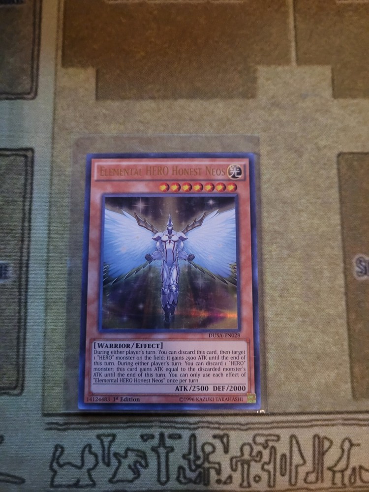 YUGIOH TCG ELEMENTAL HERO HONEST NEOS DUSA-EN028 ULTRA 1ST EDITION NEAR MINT YOU GET WHATS SHOWN IN THE PICTURE AND DESCRIPTION ALL CARDS ARE SHIP WITH PROECTIONS. ALL CARDS THAT IS BELOW 20$ WELL BE SHIP IN PWE WITH EBAY TRACKING. 24$-21$ CARDS WELL BE WITH STAMPS PWE. CARDS ABOVE 25$ WELL BE SHIP IN BUBBLE MAIL WITH USPS GROUND SHIPPING TRACKING. IF YOUR ORDERS ADDS UP TO 25$ OR ABOVE IT WOULD BE ALSO IN A BUBBLE MAILER. IF YOU ARE FROM PUERTO RICO AND ARE BUYING MAKE SURE YOU HAVE "COUNTRY LIST AS UNITED STATES NOT PRI" OR ELSE I CAN'T PRINT EBAYSHIPPING LABEL WITH TRACKING AND WELL SENT ITEM BY STAMPS TO YOU. THANKS. To international buyers since I have been having many buyers that are using Fright Forward Services. YOU ARE BUYING AT YOUR OWN RISK. As I list in my description, I ship using PWE (Plain White Envelope) for cards that does not reach $25 and above. I do not know how the Fright Services pack it after mailing it to them. All I know is that many of the PWE does not make it to its original destination (your real home address) either it's the Fright Services fault for not packing it in bubble mailer or Usps for losing it in transit. If it is being send by PWE by the Fright Services, it made take months before getting there. Also, in case if its lost or does not make it to its destination you must direct your attention to the Fright Services before contacting me. It is not my responsibly for lost mail(item) due to 3rd party delivery. To make sure you get your cards to you faster and more accuracy you must order cards combining to $25 or above that way I can use Ground Advantage and send it in bubble mailer most of the bubble mailer I use will make it to its destination. Thank you. IF YOU CAN LEAVE FEEDBACKS THAT WOULD BE MUCH APPRECIATE THANK YOU FOR BUYING.