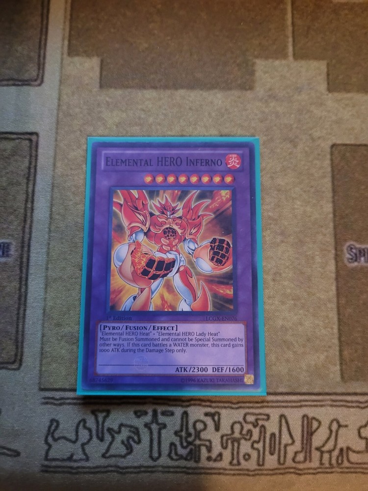 YUGIOH TCG ELEMENTAL HERO INFERNO LCGX-EN076 SUPER 1ST EDITION NEAR MINT YOU GET WHATS SHOWN IN THE PICTURE AND DESCRIPTION ALL CARDS ARE SHIP WITH PROECTIONS. ALL CARDS THAT IS BELOW 20$ WELL BE SHIP IN PWE WITH EBAY TRACKING. 24$-21$ CARDS WELL BE WITH STAMPS PWE. CARDS ABOVE 25$ WELL BE SHIP IN BUBBLE MAIL WITH USPS GROUND SHIPPING TRACKING. IF YOUR ORDERS ADDS UP TO 25$ OR ABOVE IT WOULD BE ALSO IN A BUBBLE MAILER. IF YOU ARE FROM PUERTO RICO AND ARE BUYING MAKE SURE YOU HAVE "COUNTRY LIST AS UNITED STATES NOT PRI" OR ELSE I CAN'T PRINT EBAYSHIPPING LABEL WITH TRACKING AND WELL SENT ITEM BY STAMPS TO YOU. THANKS. To international buyers since I have been having many buyers that are using Fright Forward Services. YOU ARE BUYING AT YOUR OWN RISK. As I list in my description, I ship using PWE (Plain White Envelope) for cards that does not reach $25 and above. I do not know how the Fright Services pack it after mailing it to them. All I know is that many of the PWE does not make it to its original destination (your real home address) either it's the Fright Services fault for not packing it in bubble mailer or Usps for losing it in transit. If it is being send by PWE by the Fright Services, it made take months before getting there. Also, in case if its lost or does not make it to its destination you must direct your attention to the Fright Services before contacting me. It is not my responsibly for lost mail(item) due to 3rd party delivery. To make sure you get your cards to you faster and more accuracy you must order cards combining to $25 or above that way I can use Ground Advantage and send it in bubble mailer most of the bubble mailer I use will make it to its destination. Thank you. IF YOU CAN LEAVE FEEDBACKS THAT WOULD BE MUCH APPRECIATE THANK YOU FOR BUYING.