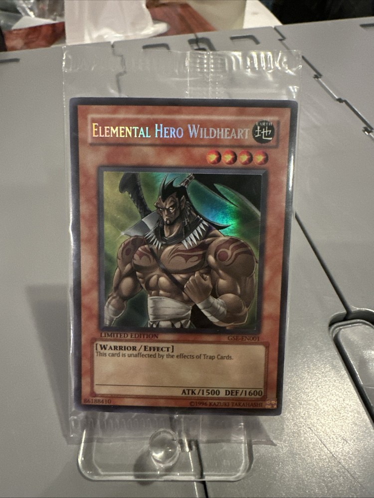 The product is a sealed promo pack from the Yu-Gi-Oh! Trading Card Game featuring the card "Elemental Hero Wildheart" with the serial number GSE-EN001. This Secret Rare promo pack is part of the Legendary Decks I set and includes a Booster Pack configuration. The manufacturer of this product is Konami, known for producing collectible card games. This promo pack is a sought-after item for fans and collectors of Yu-Gi-Oh! TCG.
