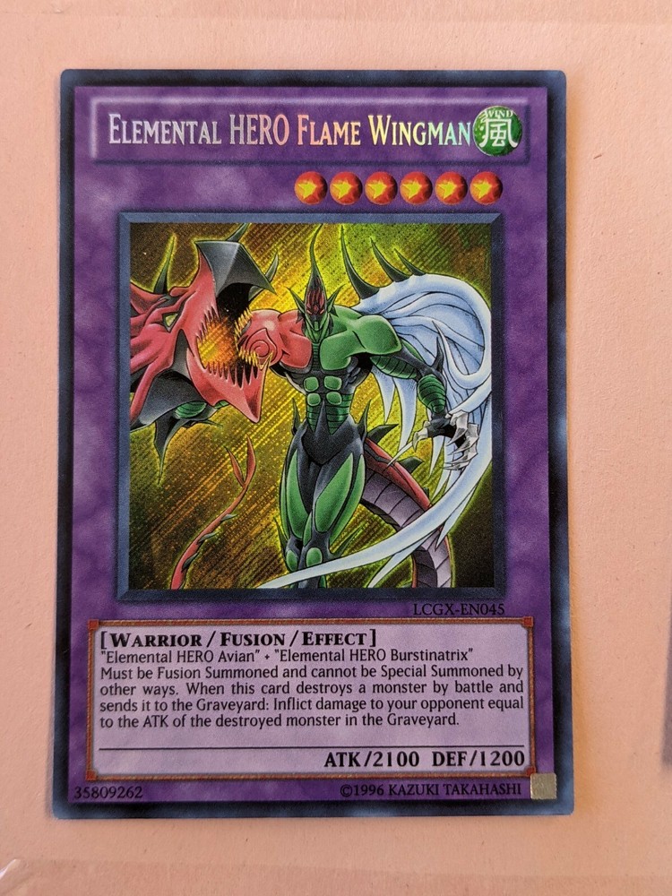 You are bidding on a YUGIOH-ELEMENTAL HERO FLAME WINGMAN-SECRET RARE-LCGX-EN045 This card is not graded but in good condition. This card may have been played with once. You get the card shown in the pictures. I will ship your card in a top loader, bubble wrap then cardboard mailer. I will combine shipping. My shipping price is $2.99 for up to 9 regular thickness cards and $3.99 and up for anything over 10 cards. Payment must be made within 3 days of purchase. I will ship 2 business days after receiving payment. I don't ship on Saturday or Sundays. To ALL my customers, please be patient as the mail has slowed down due to the VIRUS. THANK YOU for your patience and understanding. Be safe!! There is a delay at customs, my US customers, please note it could take up to 60 days to receive your cards. If you have any questions, please don't hesitate to contact me. Please check out my other items at Jethro's cards and collectibles. Have a great day, cheers!