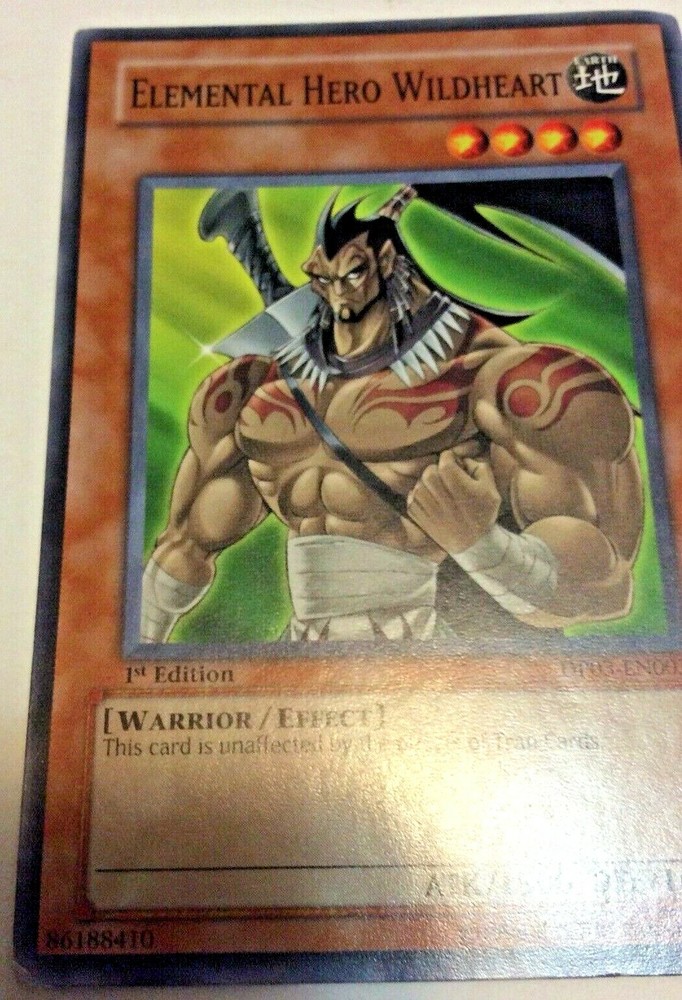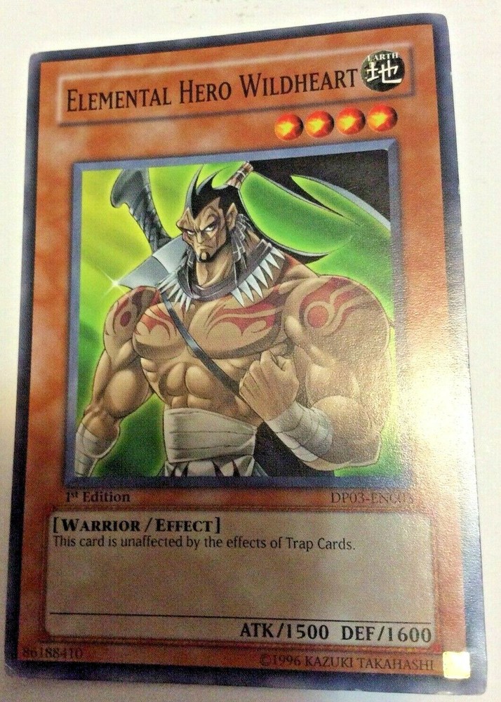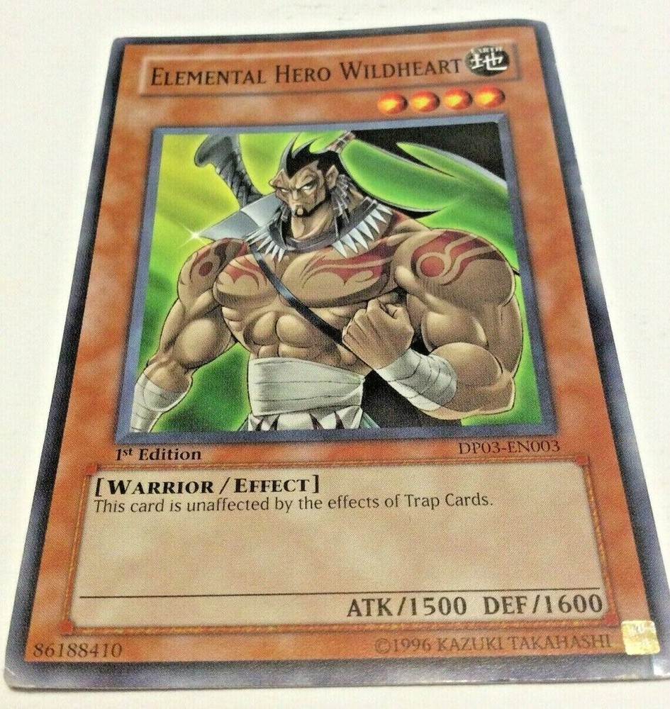 YU-GI-OH! 1996 TRADING GAME CARD ELEMENTAL HERO WILDHEARD 1st EDITION IN GOOD CONDITION AS PICTURED THIS CARD ID UNAFFECTED BY THE EFFORTS OF TRAP CARDS THANKS FOR LOOKING...
