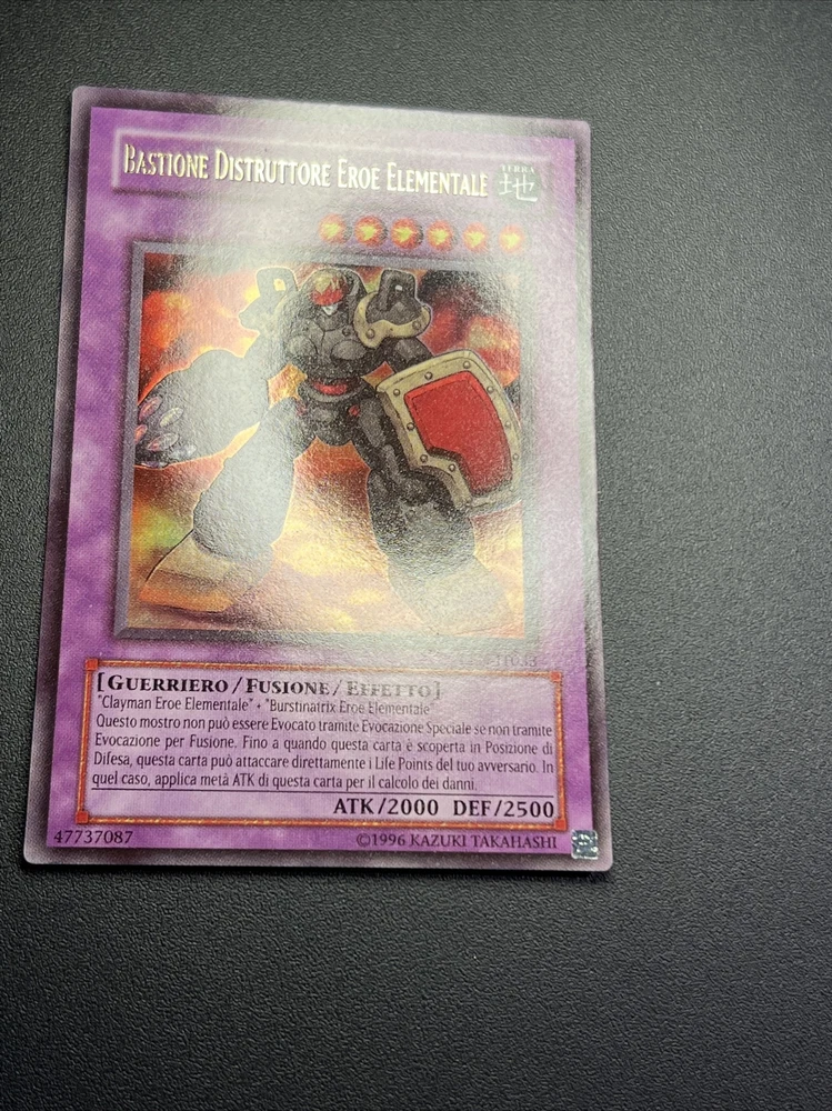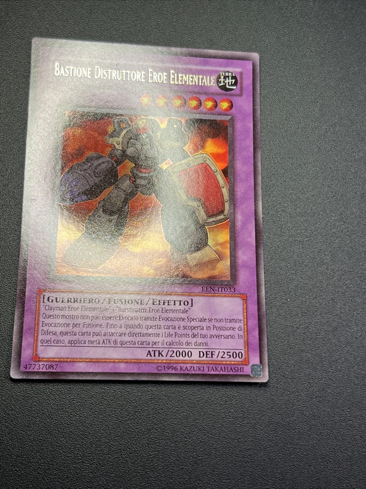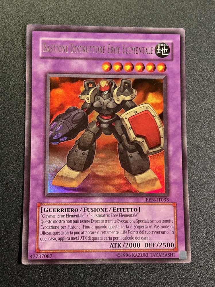 Yu Gi Oh Bastion Destroyer Elemental Hero een-it032 Ultra Rare Ita Fusion The description of this item has been automatically translated. If you have any questions, please feel free to contact us. WELCOME CONDITIONS: Paper in photo, scroll through the images EXPLORE OUR YU-GI-OH PRODUCT SECTION! SEAL YOURSELF AND GET INSPIRED. Click here! https://www.ebay.it/str/ne4r07yugiohitalia/Prodotti-sigillati/_i.html?store_cat=34734427017 ARE YOU LOOKING FOR ACCESSORIES TO PROTECT YOUR COLLECTION? Click on the link: https://www.ebay.it/str/ne4r07yugiohitalia/Accessori/_i.html?store_cat=34734420017 (if they do not join automatically by adding the products to the cart) 1 Add to your cart (without clicking the 'Buy Now' button) all the cards you wish to purchase. 2 Open the eBay cart page 3 Click the 'Request Total From Seller' button. THIS PROCEDURE IS ONLY POSSIBLE VIA PC. IT DOES NOT WORK WITH APP / TABLET / SMARTPHONE. 4 When the total has been correctly combined, we will send you a message/email and you can proceed with the payment by going to the cart. PRICES AND SERVICES AT THE END OF THE DESCRIPTION PACKAGES: We prepare packages/envelopes in the best possible way, protecting the purchased products as best as possible. If by chance the item arrives different, damaged or with problems, contact us and we will provide you with all possible assistance. WARRANTY - INFO - CONTACTS WE GUARANTEE THAT ALL OUR PRODUCTS ARE 100% ORIGINAL. We have many cards/boxes/accessories for sale, also take a look at our ebay shop you might find something interesting. CLICK THE LINK ( https://www.ebay.it/str/ne4r07yugiohitalia ) For any doubts or questions, write to us without problems, we will reply as quickly as possible. THANKS FOR YOUR VISIT. SHIPPING: ITALY Post 1 confirms the delivery of the package Registered mail With tracking code and complete control of the trip. Courier express (GLS or tnt ) With tracking code and complete control of the trip. - If you have a preference on the type of courier, write us a message, otherwise we will do it. - Possibility of having the package delivered to a collection point, write to us if you need help looking for it EUROPE ( Combine shipping Priority No tracking Registered Shipment tracking Courier service Shipment tracking AMERICA, ASIA, OCEANIA AND AFRICA (Combine shipping) Priority No tracking Registered Shipment tracking Courier service AMERICA Shipment tracking Courier service all world Shipment tracking Courier service oceania Shipment tracking Cost may vary depending on the size and weight of the package. FOR ANY QUESTION CONTACT ME. Click on the link: https://www.ebay.it/str/ne4r07yugiohitalia/Accessori/_i.html?store_cat=34734420017 4 When the total has been correctly combined, we will send you a message/email and you can proceed with the payment by going to the cart. We prepare packages/envelopes in the best possible way, protecting the purchased products as best as possible. If by chance the item arrives different, damaged or with problems, contact us and we will provide you with all possible assistance. We have many cards/boxes/accessories for sale, also take a look at our ebay shop you might find something interesting. CLICK THE LINK ( https://www.ebay.it/str/ne4r07yugiohitalia ) For any doubts or questions, write to us without problems, we will reply as quickly as possible. - Possibility of having the package de Caratteristiche Edizione limitata Fascia di età 4+ Produttore Konami Set Elemental Energy Lingua Giapponese Materiale Carta consistente Illustratore Kazuki Takahashi Attributo, colore MTG Incolore Grado Scorri Le Foto Personaggio Dragonair Rarità Ultra rara Tipo di carta Effetto Condizione carta Esattamente Quella In Foto Nome della carta Presente Nel Titolo Numero della carta Presente Nel Titolo Gioco Yu-Gi-Oh! Finitura Standard