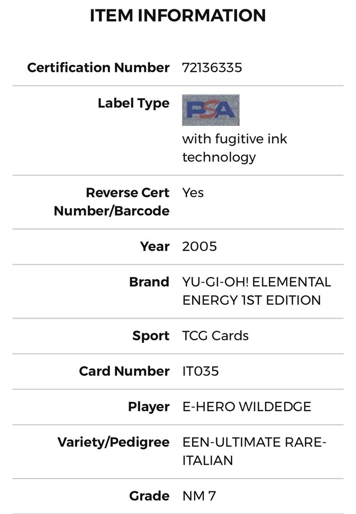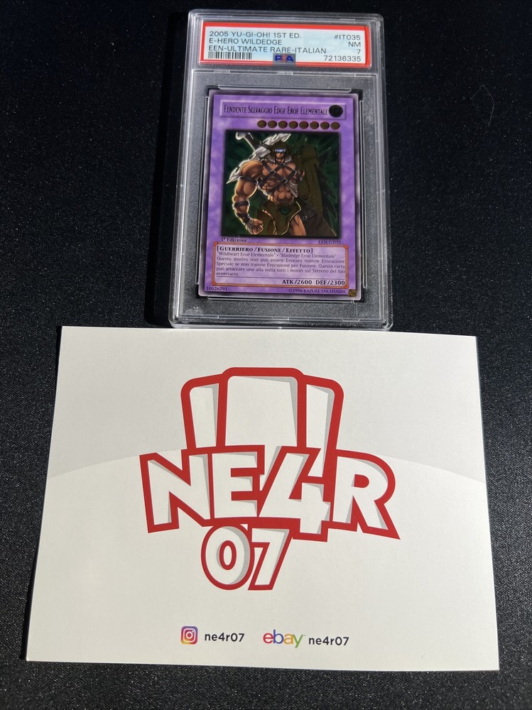Yu Gi Oh Fendente Selvaggio Edge Eroe Elementale Rare Ultimate PSA 7 EEN-IT035 The description of this item has been automatically translated. If you have any questions, please feel free to contact us. WELCOME CONDITIONS: Original graded paper for any information write to us. TAKE A LOOK AT OUR GRADED CARDS. Click here! https://www.ebay.it/str/ne4r07yugiohitalia/carte-gradate/_i.html?store_cat=34734446017 EXPLORE OUR YU-GI-OH! PRODUCTS SECTION SEALED AND GET INSPIRED. Click here! https://www.ebay.it/str/ne4r07yugiohitalia/Prodotti-sigillati/_i.html?store_cat=34734427017 ARE YOU LOOKING FOR ACCESSORIES TO PROTECT YOUR COLLECTION? Click on the link: https://www.ebay.it/str/ne4r07yugiohitalia/Accessori/_i.html?store_cat=34734420017 (if they are not automatically merged when adding products to the cart) 1 Add to your cart (without clicking the 'Buy Now' button) all the cards you wish to purchase. 2 Open the ebay cart page 3 Click the 'Request Total From Seller' button. THIS PROCEDURE IS ONLY POSSIBLE VIA PC. DOES NOT WORK WITH APP / TABLET / SMARTPHONE. 4 Once the total has been successfully combined, we will send you an message/email and you can proceed to payment by going to the cart. PRICES AND SERVICES AT THE END OF THE DESCRIPTION PACKAGES: We prepare the packages/envelopes in the best possible way, protecting the purchased products as best as possible. If by chance the item arrives different, damaged or with problems, contact us and we will provide you with all the assistance possible. WARRANTY - INFO - CONTACTS WE GUARANTEE THAT ALL OUR PRODUCTS ARE 100% ORIGINAL. We have many cards/boxes/accessories for sale, also take a look at our ebay store you might find something interesting. CLICK THE LINK https://www.ebay.it/str/ne4r07yugiohitalia For any doubt or question write to us without problems, we will answer you as soon as possible. THANKS FOR VISITING. SHIPPING: ITALY Post 1 confirms the delivery of the package Recommended With tracking code and complete control of the journey. Courier express (GLS or tnt ) With tracking code and complete control of the journey. - If you have any preferences on the type of courier, write us a message, otherwise we will do it for you. - Possibility of having the package delivered to a collection point, write to us if you need help looking for it EUROPE ( I combine shipping Priority No tracking Registered Shipment tracking Courier service Shipment tracking AMERICA, ASIA, OCEANIA AND AFRICA ( I combine shipping ) Priority No tracking Registered Shipment tracking Courier service AMERICA Shipment tracking Courier service all over the world Shipment tracking Courier service oceania Shipment tracking Cost may vary depending on the size and weight of the package. FOR ANY QUESTION CONTACT ME. Click here! https://www.ebay.it/str/ne4r07yugiohitalia/Prodotti-sigillati/_i.html?store_cat=34734427017 4 Once the total has been successfully combined, we will send you an message/email and you can proceed to payment by going to the cart. We prepare the packages/envelopes in the best possible way, protecting the purchased products as best as possible. If by chance the item arrives different, damaged or with problems, contact us and we will provide you with all the assistance possible. We have many cards/boxes/accessories for sale, also take a look at our ebay store you might find something interesting. CLICK THE LINK https://www.ebay.it/str/ne4r07yugiohitalia - If you have any preferences on the type of courier, write us a message, otherwise we will do it for you. - Possibility of having Gioco Yu-Gi-Oh! Set Elemental Energy Lingua Italiano Autografato No Specialità Pop 1 Rarità Rara ultimate Caratteristiche Prima edizione Vintage Sì Dimensione della carta Giapponese Personaggio edge Materiale Plastica Nome della carta Fendente Selvaggio Edge Eroe Elementale Produttore Konami Tipo di carta Normale Tipo di creatura, mostro Guerriero Finitura Olografico Anno di fabbricazione 2005 Fascia di età 6+
