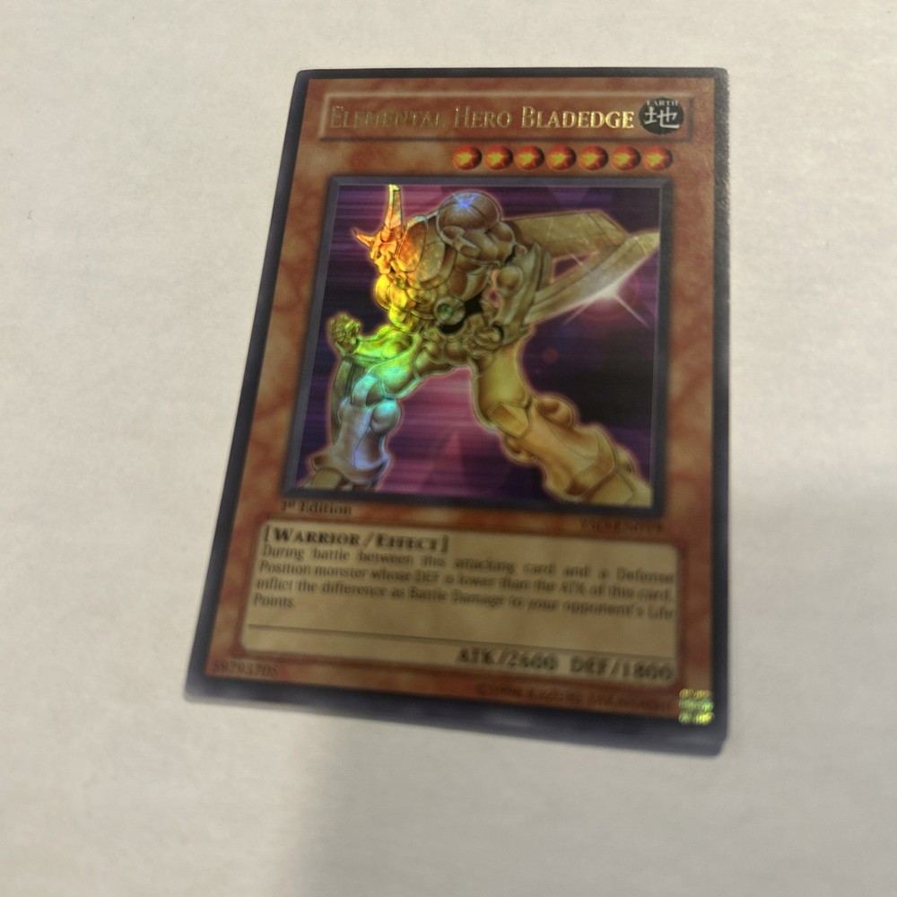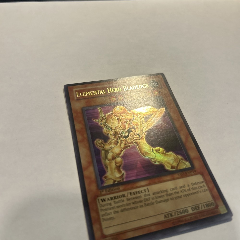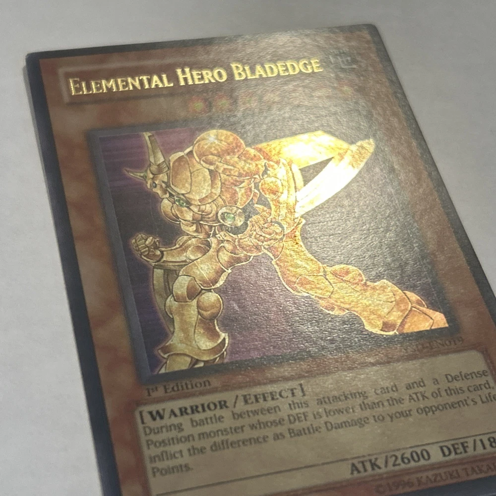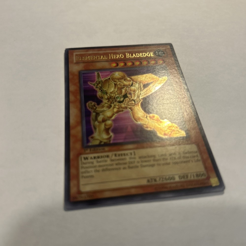 Experience the nostalgia of the classic card game with this authentic Yu-Gi-Oh! 1st Edition Elemental Hero Bladedge card. Featuring the iconic character from the beloved franchise, this original card is a must-have for collectors and fans alike. The card is in light play condition, with no autographs or team specifications, adding to its vintage charm. Manufactured in 1996, this card is a testament to the early days of Yugioh. It measures the standard 3¼" x 2¼" and bears the card number YSD-EN019. With its unique Light attribute and pristine original design, this Elemental Hero Bladedge is a fantastic addition to any collection, bringing a piece of the game's history into your hands.