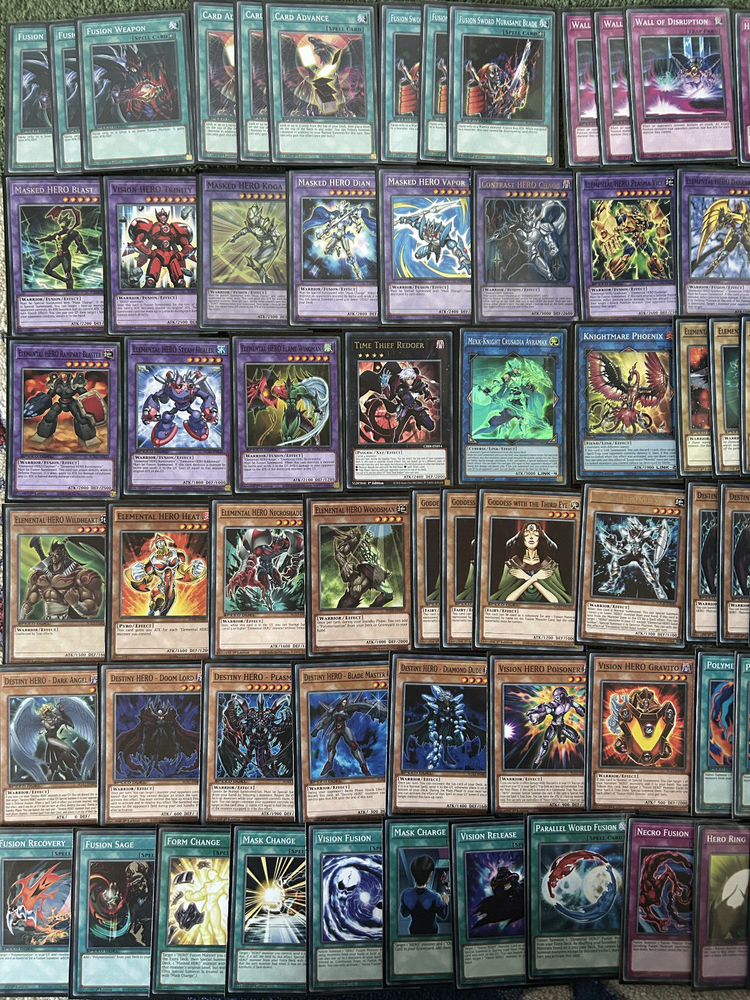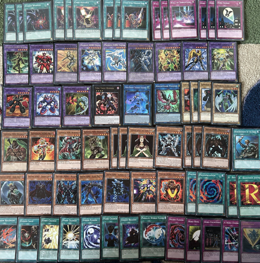 A complete, High Rarity, 70 Card Tournament Elemental Hero Deck Vision Masked core with a full 15 Card Extra & Side Deck. The deck is entirely and uniformly sleeved in Konami Brand sleeves so you're ready to go as soon as they arrive. The general condition of the deck is Mint N/M condition and cards are delivered as pictured, every card listed here will be delivered to you. This deck will be sent Signed For and will be properly protected. Please check out my other listings and don't hesitate to contact me with any inquiries. Always willing to take further photographs of specific cards when requested and will work with you to create multiple listing discounts etc.