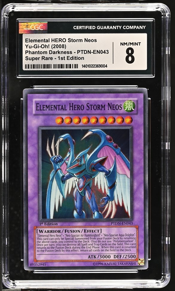 Dive into the realm of duelists with the iconic Elemental Hero Storm Neos, a must-have for any Yu-Gi-Oh! TCG collector. Graded as a Near Mint or Better by the Certified Guaranty Company, this Super Rare Fusion card from the - Yugi - set is a standout piece, boasting the sought-after 1st Edition status. With its striking artwork and powerful in-game abilities, the Storm Neos card is a true gem for both serious collectors and casual fans. The card's heritage is evident in its Grade 8 classification, ensuring that you're not just getting a piece of the action, but a slice of Yu-Gi-Oh! history. Add this fusion of strategy and nostalgia to your collection today.