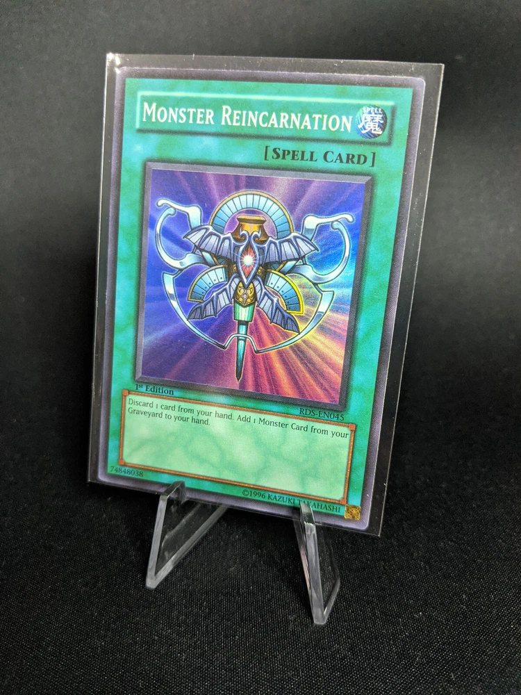 Buy 3 cards and pick a fourth for free. I will refund the cost of an equal or lesser value card that you have bought and refund the cost after i print your shipping label. Do this with as many cards as are available. So if you buy 8 cards i will refund the cost of 2 and so on. Selling Yugioh cards from various sets. The condition varies from card to card so please look at the pictures or ask for specific cards if you need information on condition. $2.00 shipping and .25 cents per additional card for shipping. Please ask questions before bidding. No returns please.