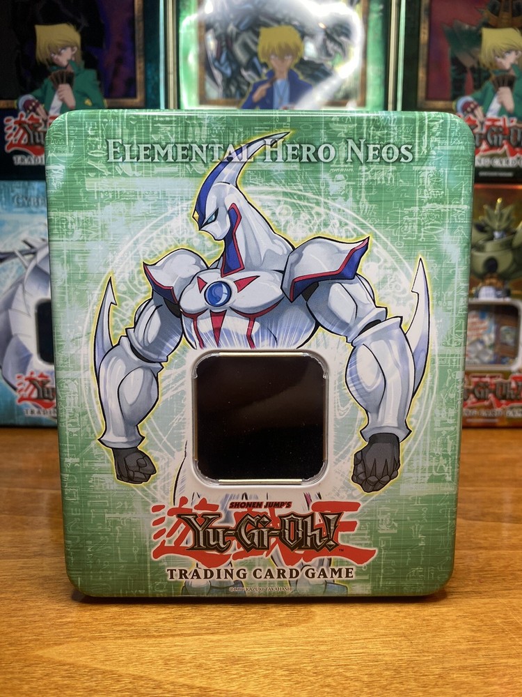 This Yu-Gi-Oh Collector's Tin features the iconic Elemental Hero Neos, an ultra-rare card from the popular collectible card game. The tin is made of high-quality materials and is perfect for storing your cards or other small items. Please note that this item does not come with any cards or other materials, it is an empty tin. It is a great addition to any collector's collection and is sure to impress with its unique design. Add this Yu-Gi-Oh Collector's Tin to your collection today!