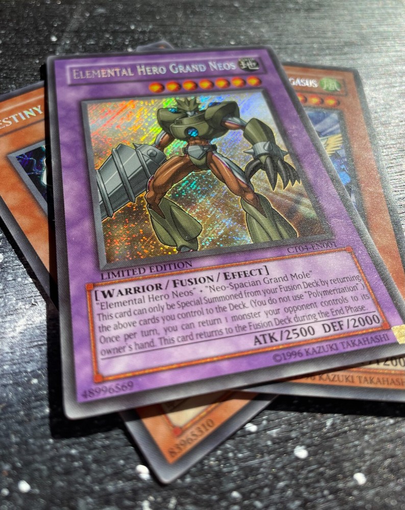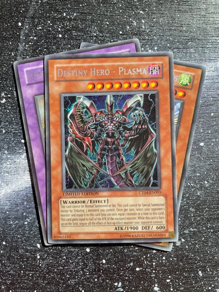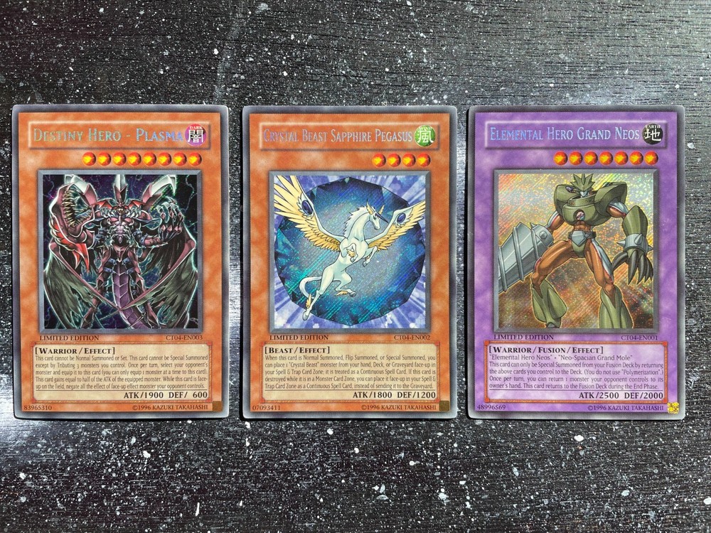 YuGiOh Collector's Tin (cards only) - Series 4-Wave 1 (complete set). Destiny Hero - Plasma CTO4-EN003. Crystal Beast Sapphire Pegasus CTO4-EN002. Elemental Hero Grand Neos CTO4-EN001