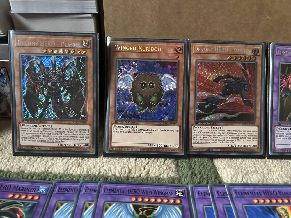 A Yu-Gi-Oh! TCG & SPEED DUEL DELUXE Jaden Destiny Evil & Elemental Hero Deck Core and Collection, in Mint N/M condition. You will be delivered every pictured card & a free paper game mat inside a protective Megapack Golden Tin This collection will be sent via Royal Mail and will be properly protected. Please check out my other listings and don't hesitate to contact me with any inquiries. Always willing to take further photographs of specific card listings when requested and will work with you to create multiple listing discounts etc.