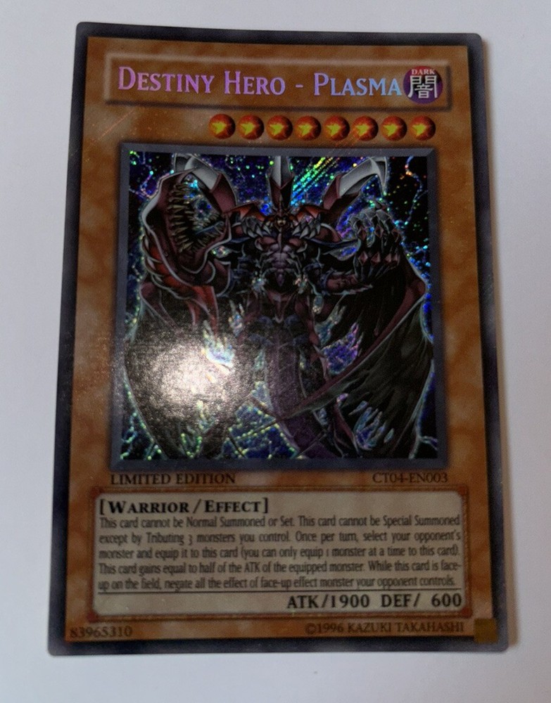 DESTINY HERO - PLASMA - CT04-EN003 en secret limited Edition La carte est en anglais, comme neuve (near mint to mint) Je suis un vendeur sérieux. Envoie en courrier suivi pour plus de sécurité :) Inte...