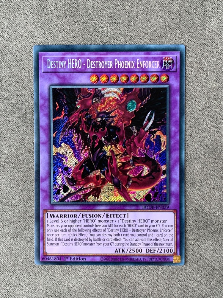 Yu-Gi-Oh! TCG Destiny HERO - Destroyer Phoenix Enforcer BODE-EN039 Secret Rare 1st Edition English Near Mint Condition Will be sent sleeved inside a toploader