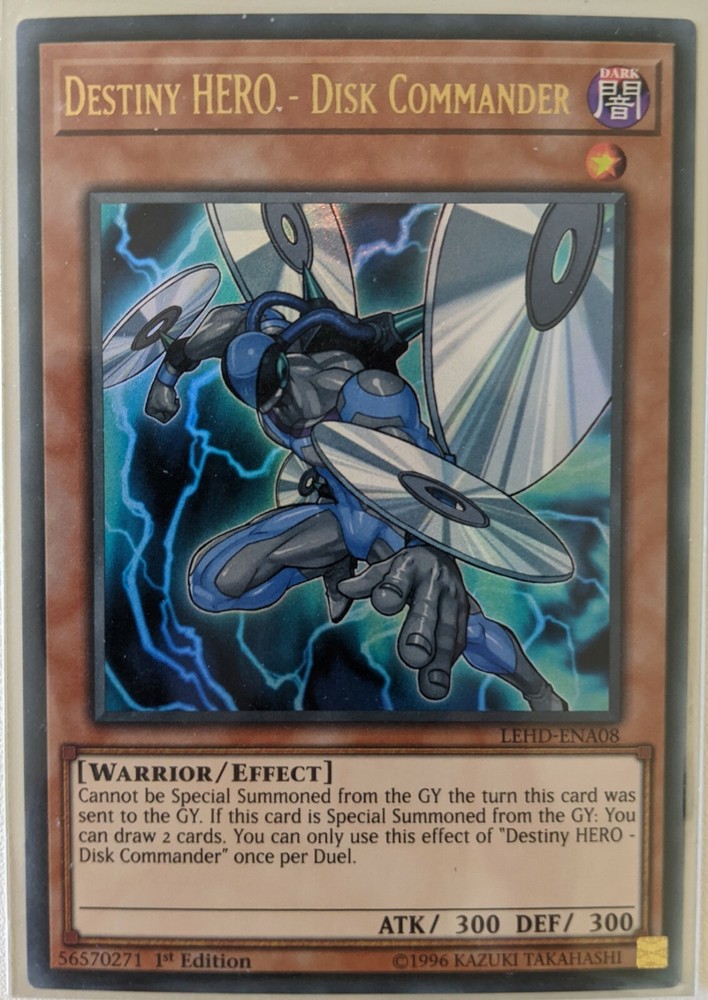 You are buying an Ultra Rare, 1st Edition Destiny HERO - Disk Commander from LEHD-ENA08 in Near Mint condition. Feel free to contact us if you have any Questions or Comments and we will get back to you ASAP. Our postage options: Domestic: Standard (Cheapest option) Domestic Tracked Letter (Tracked) Express (Tracked, fastest delivery) International: We currently only have Express and Registered (untracked with signature) postage due to delays caused by the current pandemic however if you interested in purchasing an item through Standard International Postage (Untracked) feel free to contact us. If you would like to combine postage over multiple items but are unable to please select the request total button or send us a message and we can help you out. Thanks for shopping with ChaosTCGAus! We Hope to see you again
