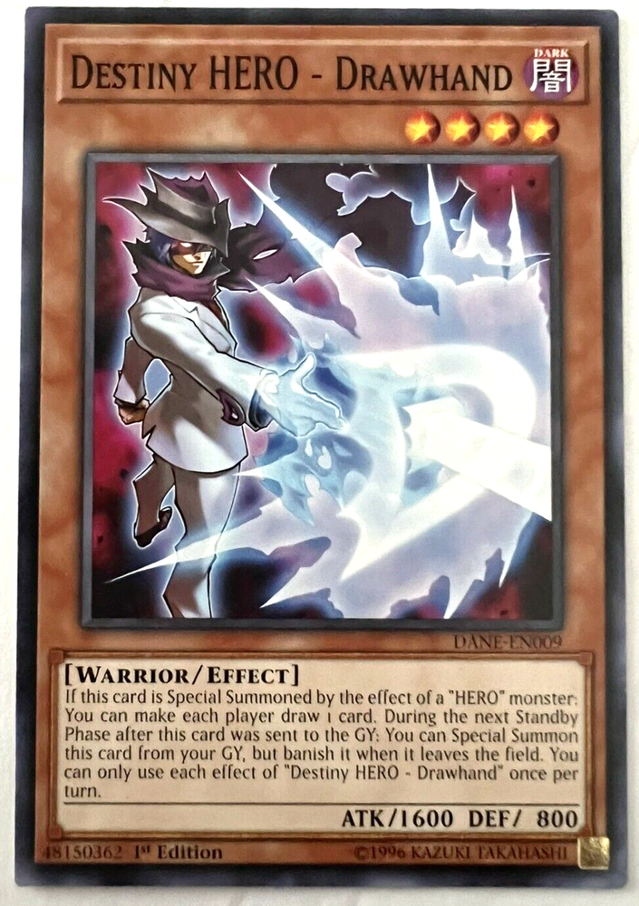 This Destiny HERO - Drawhand card is in fantastic condition, just like the photo shows! Perfect for any YuGiOh collector or player looking to boost their deck. The seller is super friendly and open to offers, especially if you're buying multiple items—great way to save. Fast shipping and excellent packaging too. Highly recommended for anyone into TCGs!