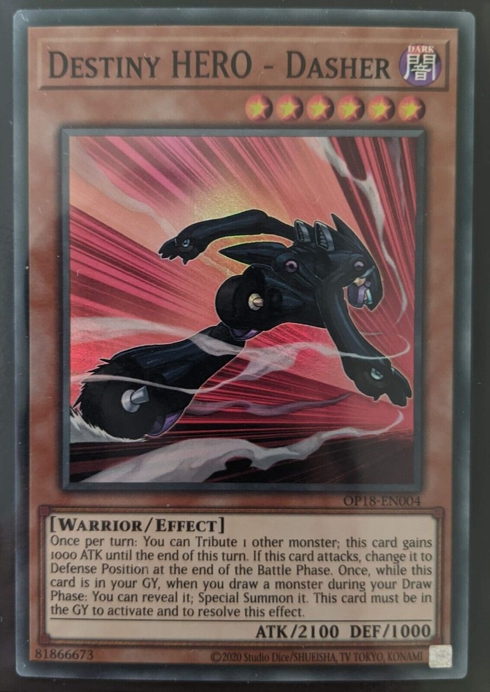 You are buying a Super Rare Destiny Hero - Dasher from OP18-EN004. Feel free to contact us if you have any Questions or Comments and we will get back to you ASAP. Our postage options: Domestic: Standard (Cheapest option) Domestic Tracked Letter (Tracked) Express (Tracked, fastest delivery) International: We currently only have Express and Registered (untracked with signature) postage due to delays caused by the current pandemic however if you interested in purchasing an item through Standard International Postage (Untracked) feel free to contact us. If you would like to combine postage over multiple items but are unable to please select the request total button or send us a message and we can help you out. Thanks for shopping with ChaosTCGAus! We Hope to see you again Listing and template services provided by inkFrog