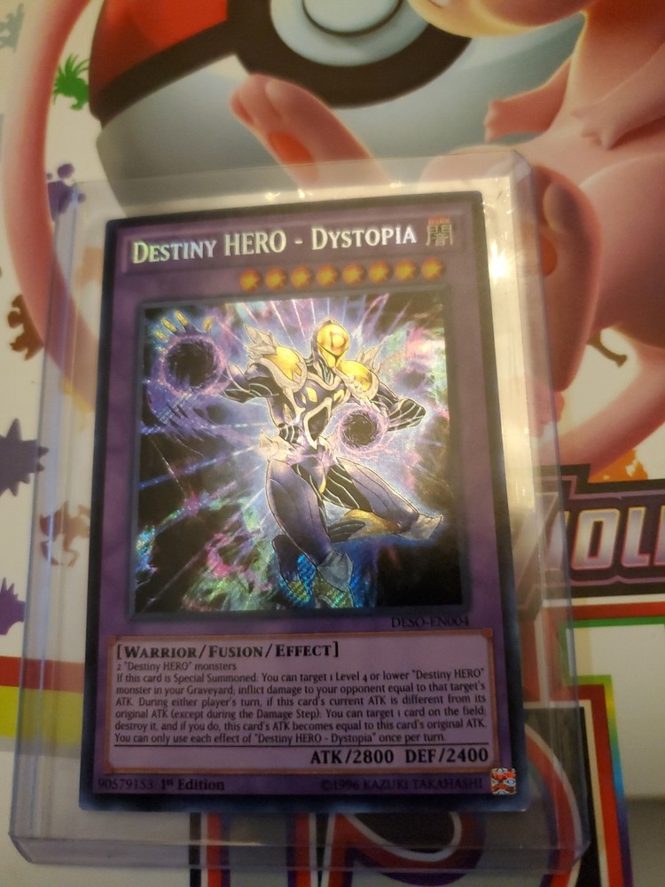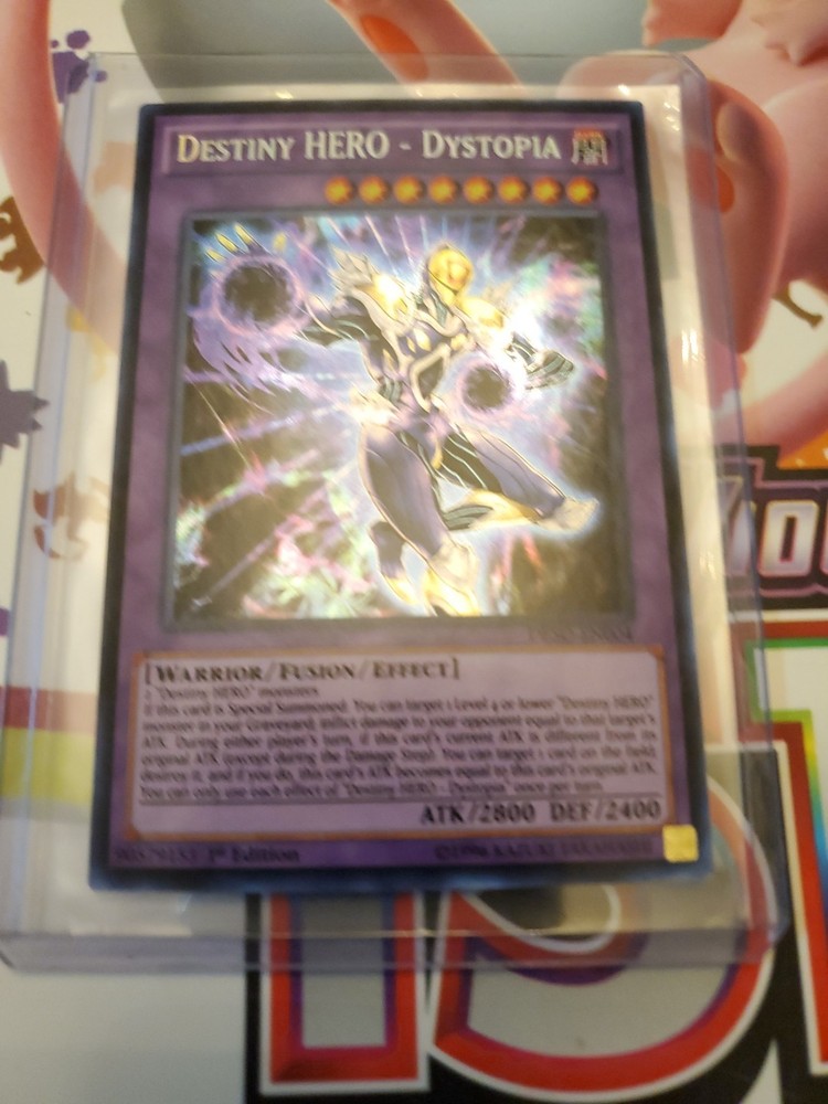 This card is absolutely stunning! The Secret Rare foil really makes Dystopia pop—it arrived in flawless Near Mint condition, just as described. Ben’s Card Connection provides excellent service, offering fair combined shipping and being super responsive to questions. Highly recommend for any Destiny Hero collector!