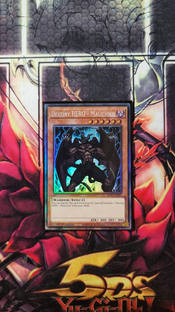 Yu-Gi-Oh Destiny Hero - Malicious Collectors Rare 1st Edition RA03-EN001 Straight from pack to sleeve...