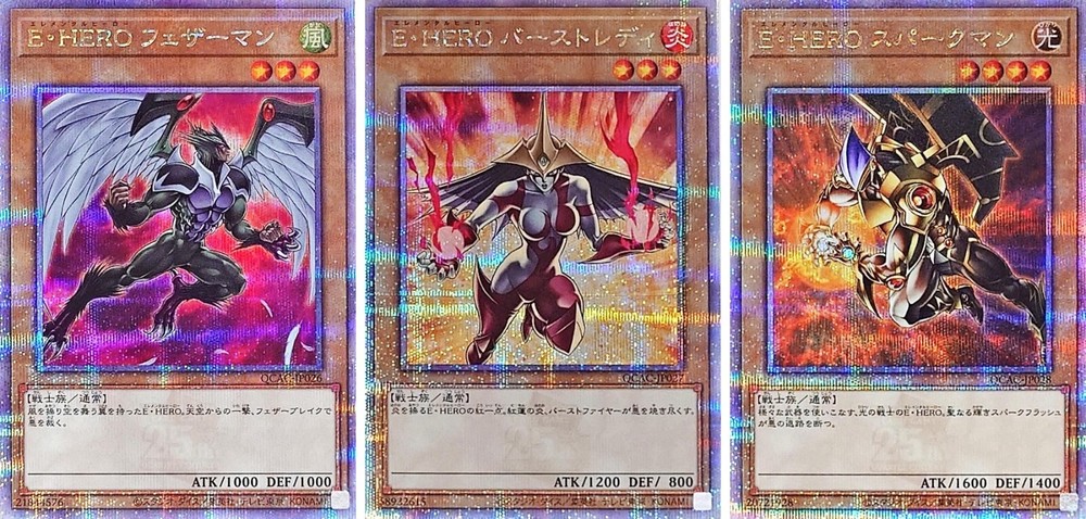This Yu-Gi-Oh! E•HERO Quarter Century Secret set is a must-have for collectors! The Japanese art is stunning, with crisp details and vibrant colors. The cards arrived in perfect near-mint condition, just like fresh from a pack. The Elemental HERO trio—Avian, Burstinatrix, and Sparkman—look absolutely gorgeous in their secret rare finish. A fantastic addition to any Yu-Gi-Oh! collection, especially for fans of the classic HERO archetype. Highly recommended for both display and play!