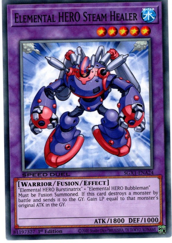 Yu-Gi-Oh! ELEMENTAL HERO STEAM HEALER - 1st Edition SGX1-ENA24 # 58 ALL COLLECTION. 1 EDITION From 2020 NUMBER# 81197327- SGX1-ENA24. WE HAVE A COLLECTION OF MORE THAN 300 DIFFERENT CARD!!!!