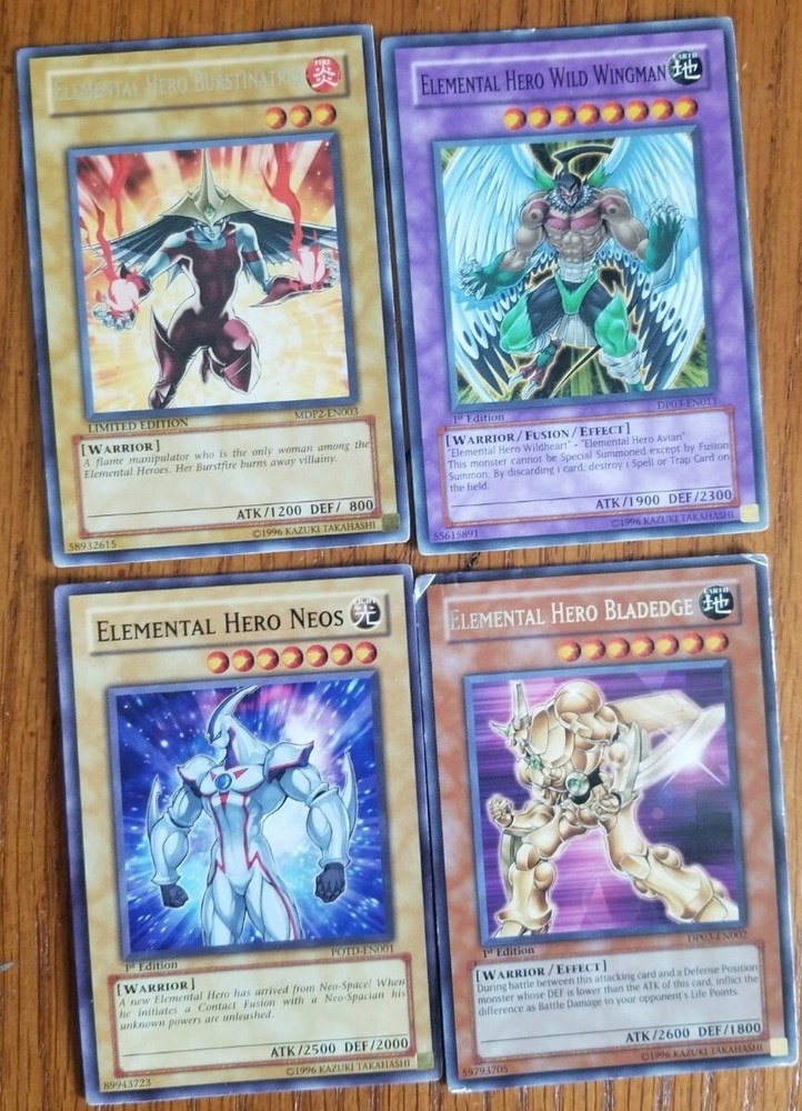 YuGiOh! Elemental HERO Cards. Condition is Used. Some wear and tear at the corners. Enlarge photo for details. Shipped with USPS First Class.