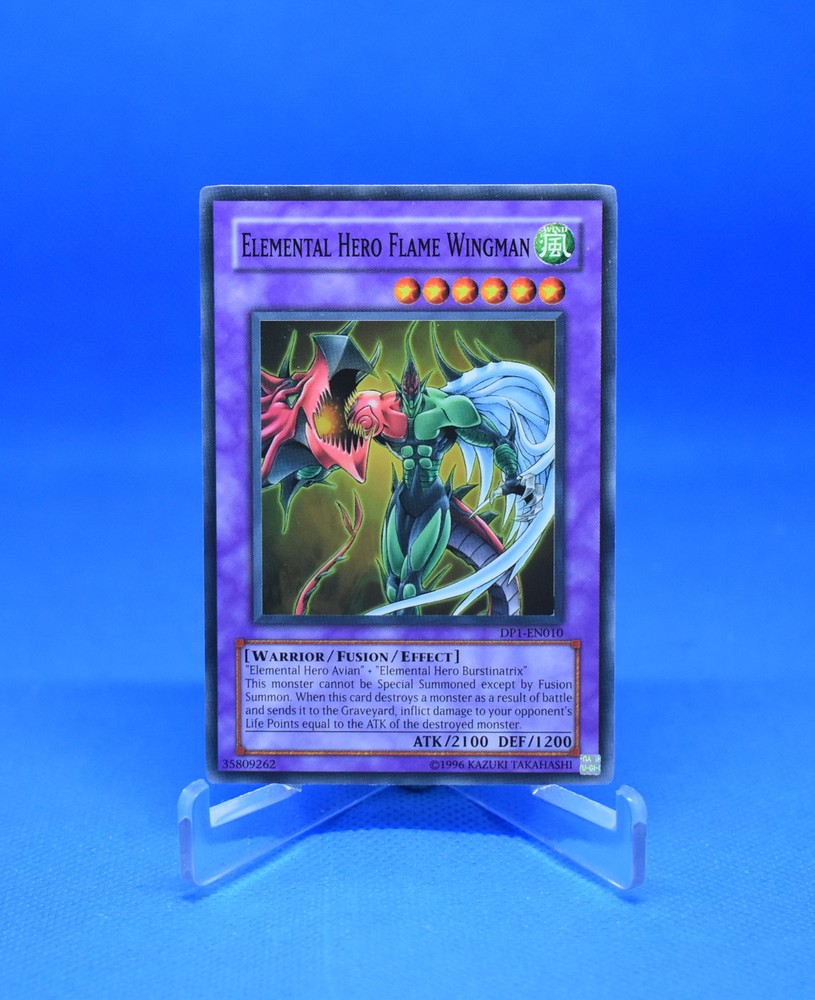 Yu-Gi-Oh! Elemental HERO Flame Wingman [DP1-EN010] Super Rare NM Free shipping: Will be put in a sleeve and top loader, and then sent via PWE. Can add extra protection at your expense.