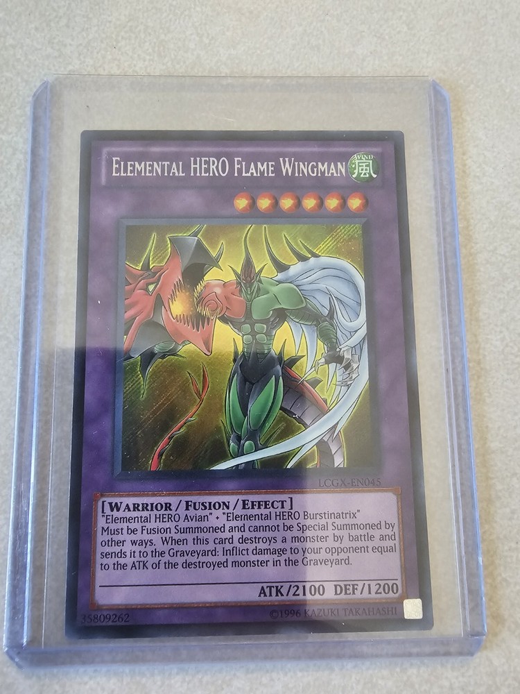 This rare and highly sought-after Yu-Gi-Oh! card features the Elemental Hero Flame Wingman, with a stunning holographic finish. It is part of the Legendary Collection 2: The Duel Academy Years set, and is a Secret Rare card with the card number LCGX-EN045. The card is made of high-quality card stock and is in standard size. The card's features include an unlimited edition, English language, and a monstrous card type. The card is perfect for collectors and enthusiasts of the Yu-Gi-Oh! Trading Card Game. Get your hands on this card now and add it to your collection!