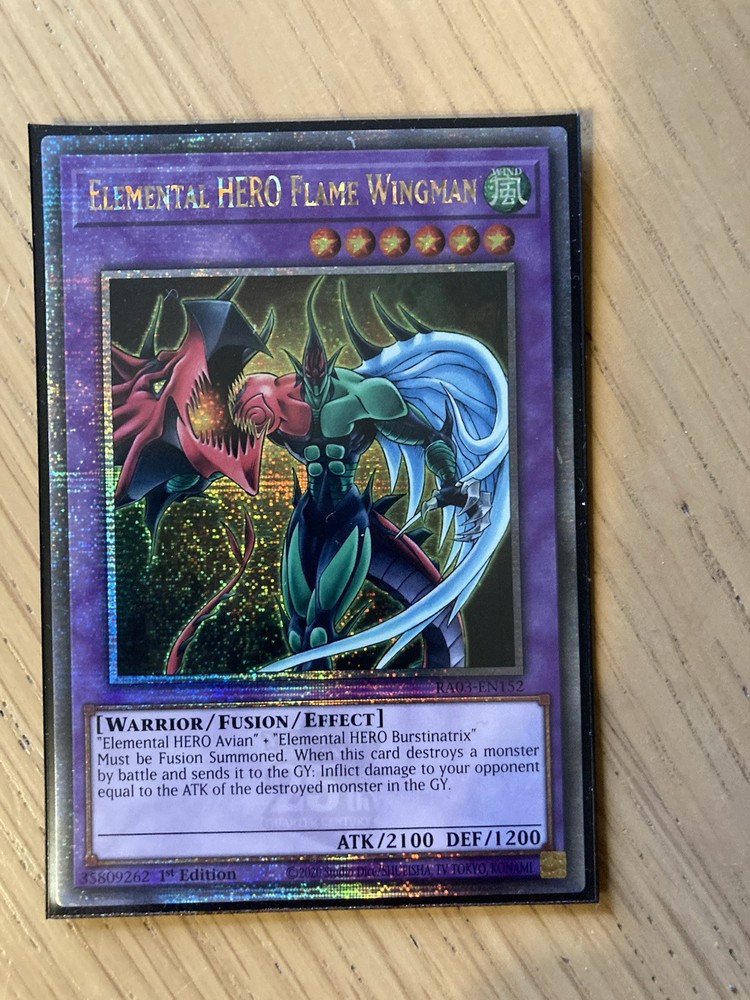 This Yu-Gi-Oh! Trading Card Game card features Elemental HERO Flame Wingman, in lightly played (Excellent) condition. Manufactured by Konami, it is from the Quarter Century/QCR series. The card is not...