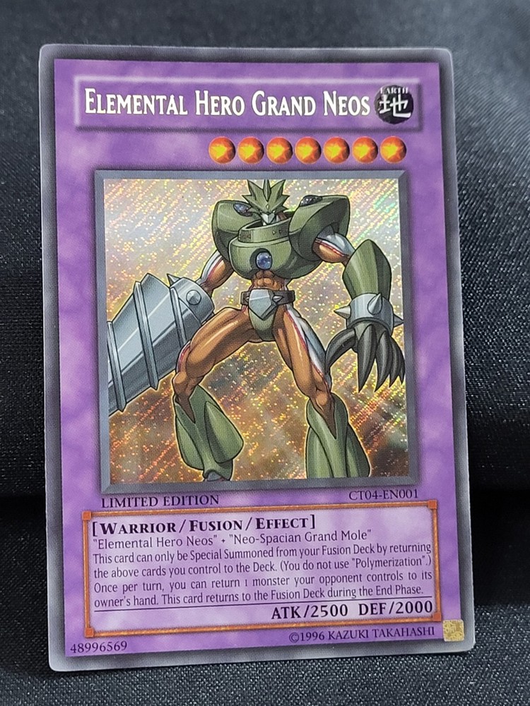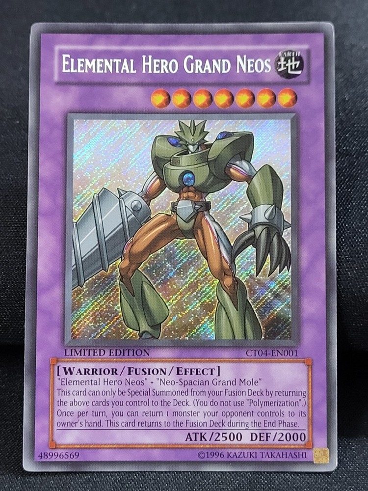 You are bidding on 1 YuGiOh Elemental HERO Grand Neos CT04-EN001 Limited Edition Secret Rare NM Please see all pictures. Thank you. If you need more pictures or have any other questions, please feel free to ask. International bidders please look at global shipping details before bidding. Thank you and happy bidding.