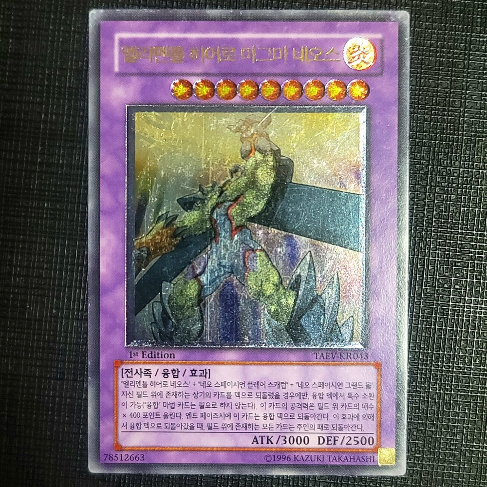 Yu-Gi-Oh "Elemental HERO Magma Neos" [TAEV-KR043] Ultimate Rare MP Korean 1st edition - Product Description Yu-Gi-Oh "Elemental HERO Magma Neos" [TAEV-KR043] Ultimate Rare Korean Version 1st edition Moderately Played Condition Single Card + Sleeve + Top loader Available for combined shipping - Policy We will be shipped from Republic of Korea, within 1 ~ 3 business days after order Whatever you purchase, We'll give you Giveaway (20 Random Cards + 1 Unopened Pack) We use Korea Post ( Standard: 18 ~ 28 business days ) All of order provide Tracking Number Single Card + Sleeve + Top loader Available for combined shipping Taxes and charges are not included in the item price or shipping charges. These charges are the buyer's responsibility, So p lease check with your country's customs office to determine what these additional costs will be prior to bidding or buying. Thank you for your Interest, Feel free to send message for any Inquiry :)