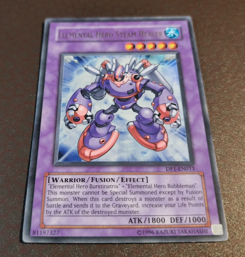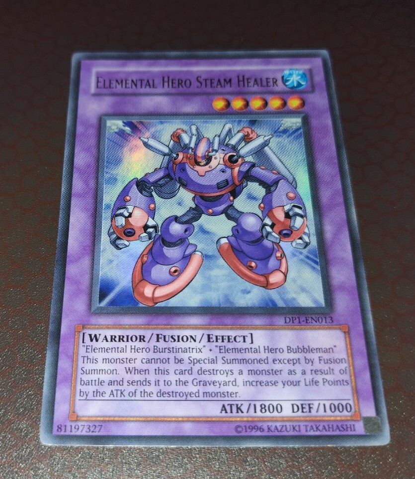 You are currently viewing: Elemental HERO Steam Healer -DP1-EN013- Ultra Rare - Unlimited MP! Ultra Rare from Duelist Pack 1 You'll receive one (1x) of the listed card when purchasing this listing Card is in moderately played condition and will be shipped with a sleeve alongside a toploader for protection. Please allow 2-3 business days for handling time. If you were satisfied with the purchase and delivery, I ask that you please leave positive feedback. Feel free to message me with any type of questions and concerns, through private message. Thank you for viewing this listing!