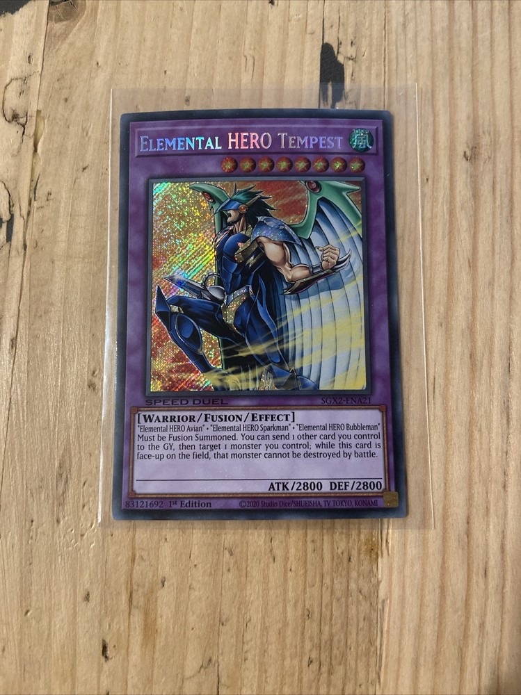 You are purchasing the item in the title. Please look at images for condition. Please reach out with any questions. This Yu-Gi-Oh! TCG card features the Elemental Hero Tempest and is a 1st edition Secret Rare. The card is in near mint condition and comes with a free holo card. It is a great addition to any collection for fans of the game or collectors of rare cards. The card is in English and was manufactured by Konami. The card has not been modified and is in its original state. This is a must-have for any collector who wants to complete their set of rare Yu-Gi-Oh! cards.