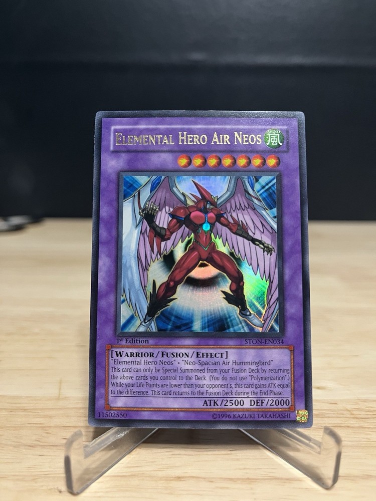 NM - Please carefully check over photos and message if you have any questions. Will ship sleeved in a top loader inside a team bag protected with cardboard inside a bubble mailer. Elevate your Yu-Gi-Oh! TCG collection with the Elemental Hero Air Neos card from the Strike of Neos set. This Ultra Rare Fusion card, numbered STON-EN034, is a must-have for both serious collectors and strategic players. Its 1st Edition status adds a layer of uniqueness and desirability, making it a standout addition to any deck or display.