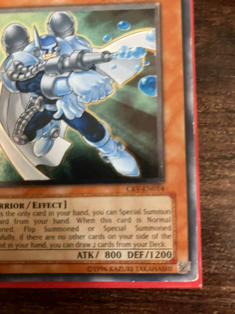 Yu-Gi-Oh Elemental Hero Bubbleman CRV-EN014 Ultimate Rare. This card is in heavily played condition. Card will be sent in a sleeve and toploader. This is the US print of this card. This card has some heavy wear on the front and back.